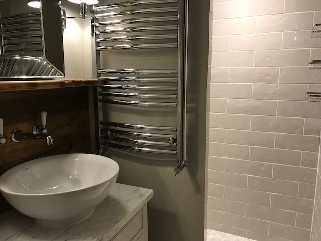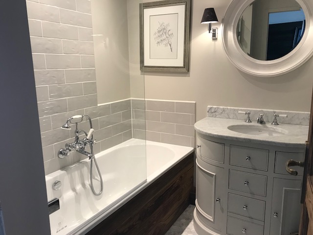 Sanitaires : Salle de bains avec baignoire, WC séparés et une salle de douche avec WC.