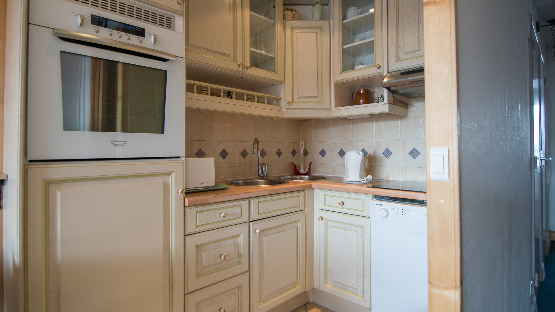 Cuisine : Plaques, four, réfrigérateur et lave-vaisselle.