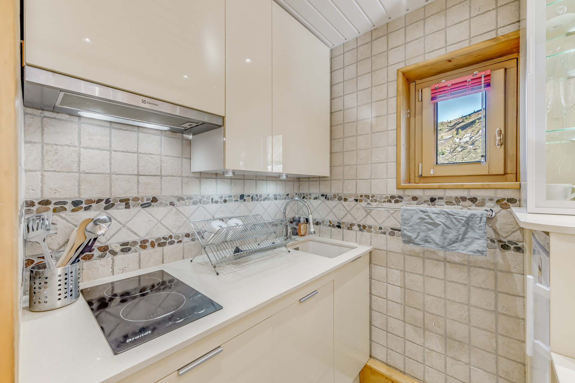- 1 Cuisine ouverte sur le séjour équipée d'un lave-vaisselle, lave-linge, réfrigérateur, petit congélateur, four, micro-ondes et 2 plaques induction