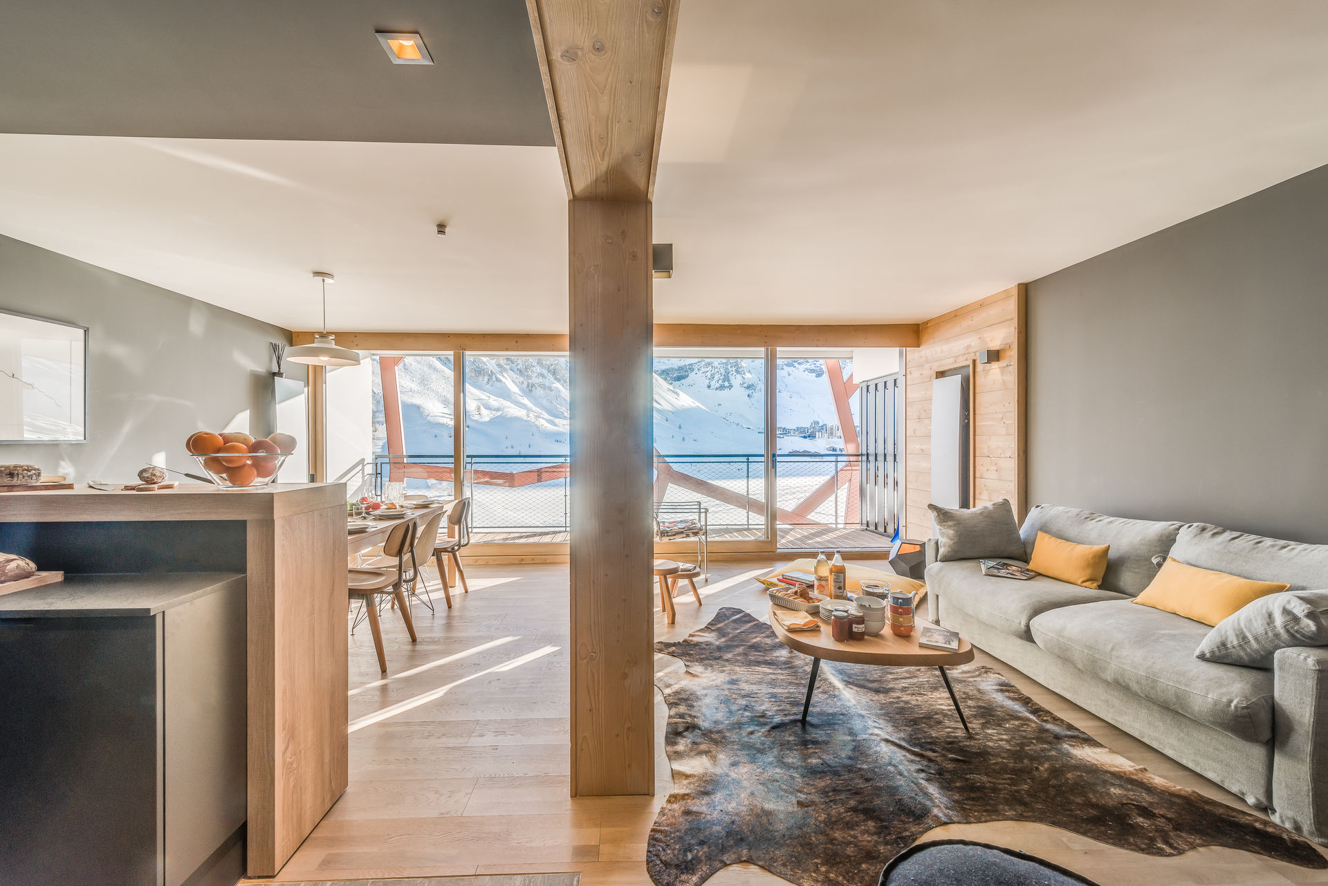 Il possede un balcon expose plein sud, avec vues exceptionnelles et degagees sur le lac naturel de Tignes, les massifs de Toviere et le glacier de la Grande Motte