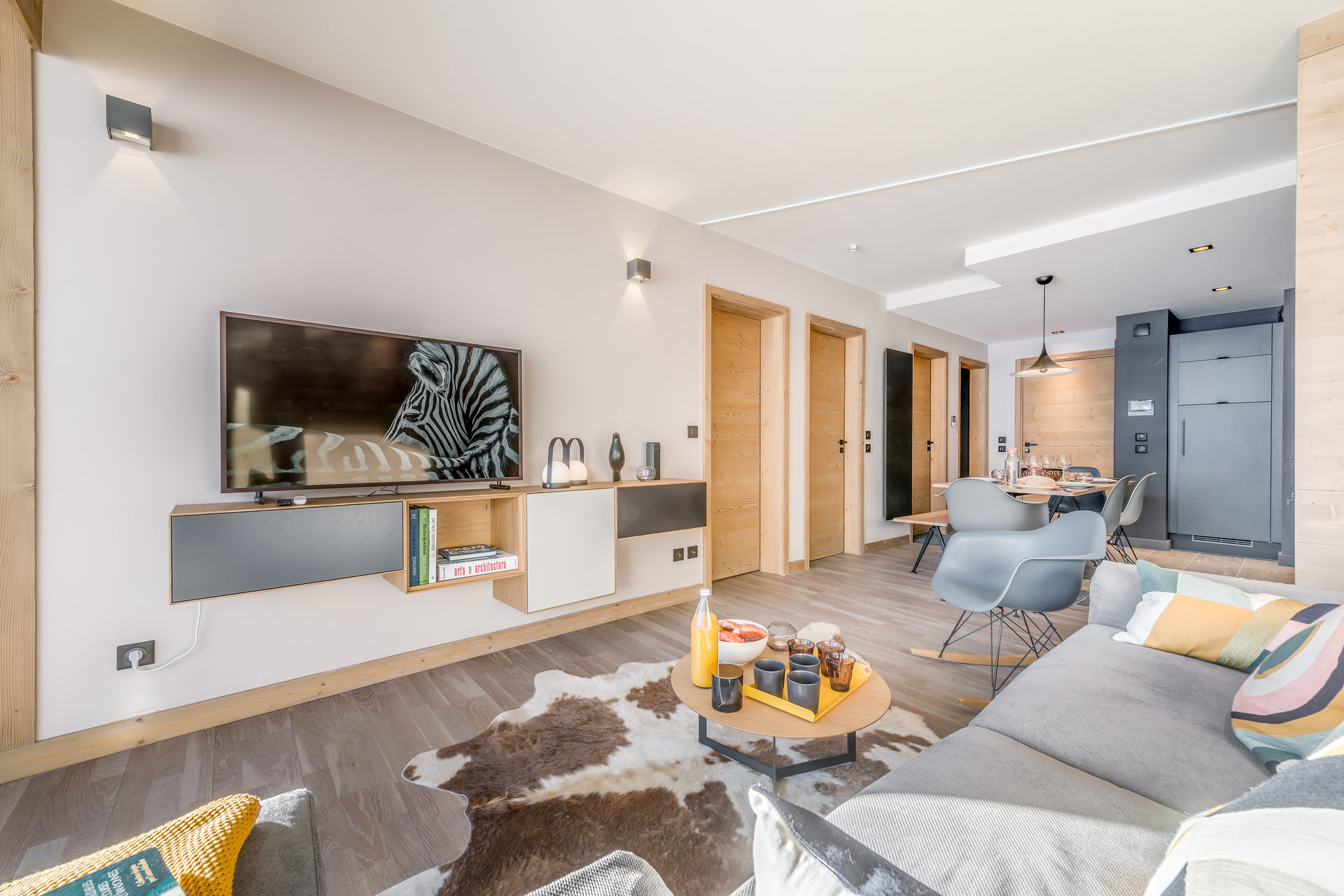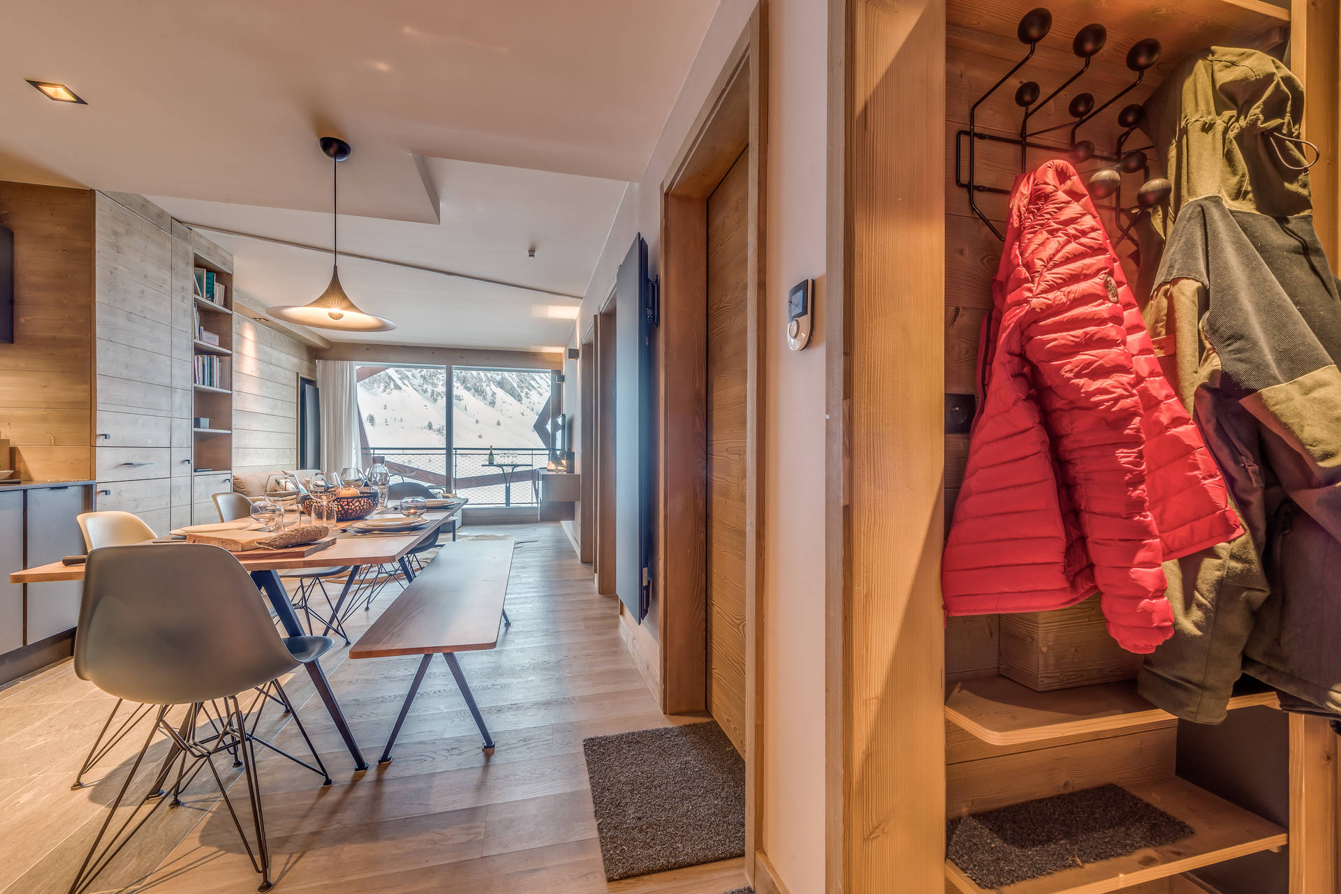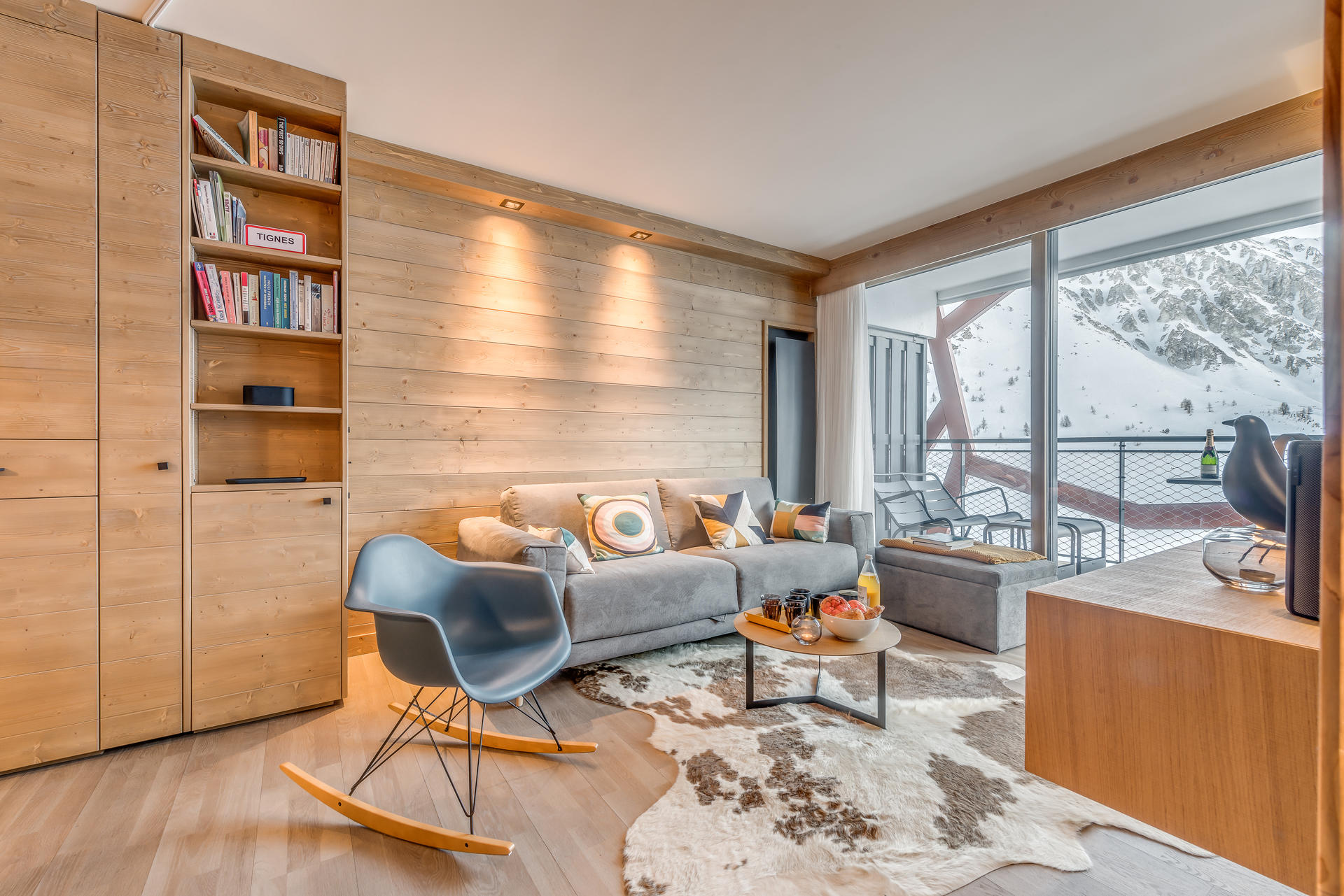 Il possede un balcon exposee plein sud, avec vues exceptionnelles et degagees sur le lac naturel de Tignes, les massifs de Toviere et le glacier de la Grande Motte
