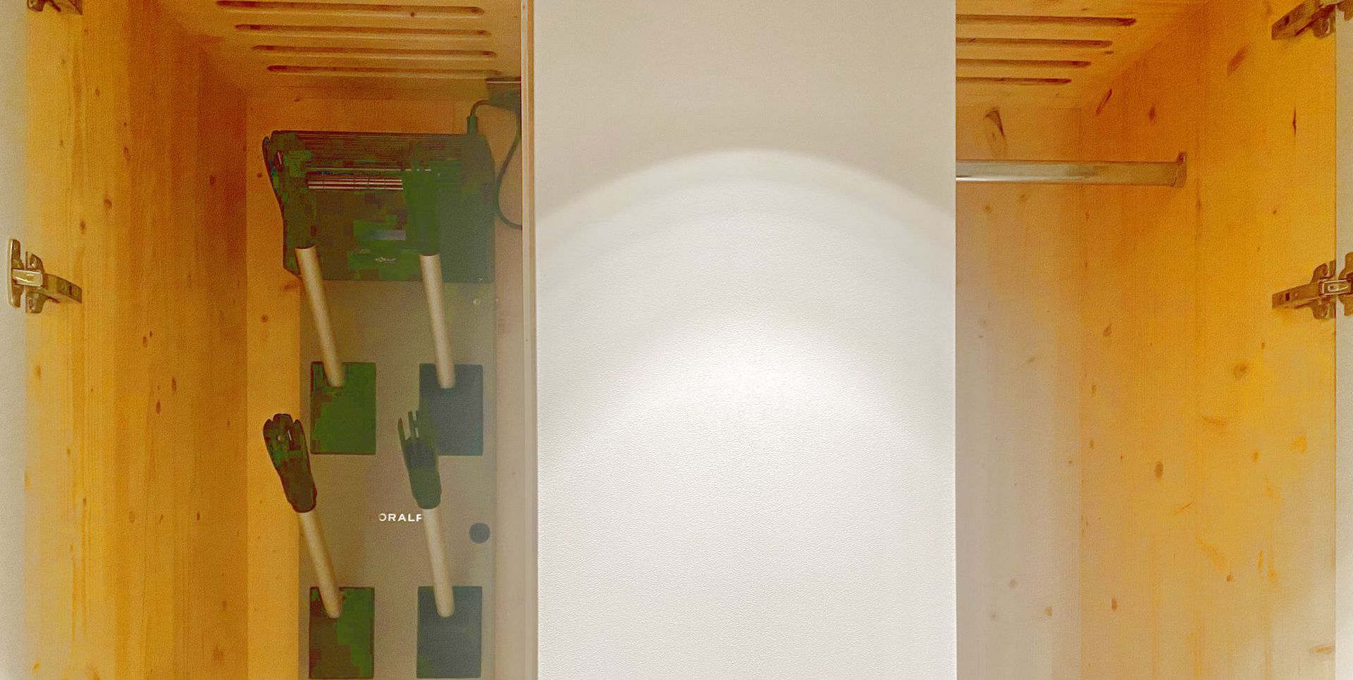 1 placard avec radiateur seche-chaussures de ski, et pour suspendre les combinaisons de ski et vetements d'outdoor.