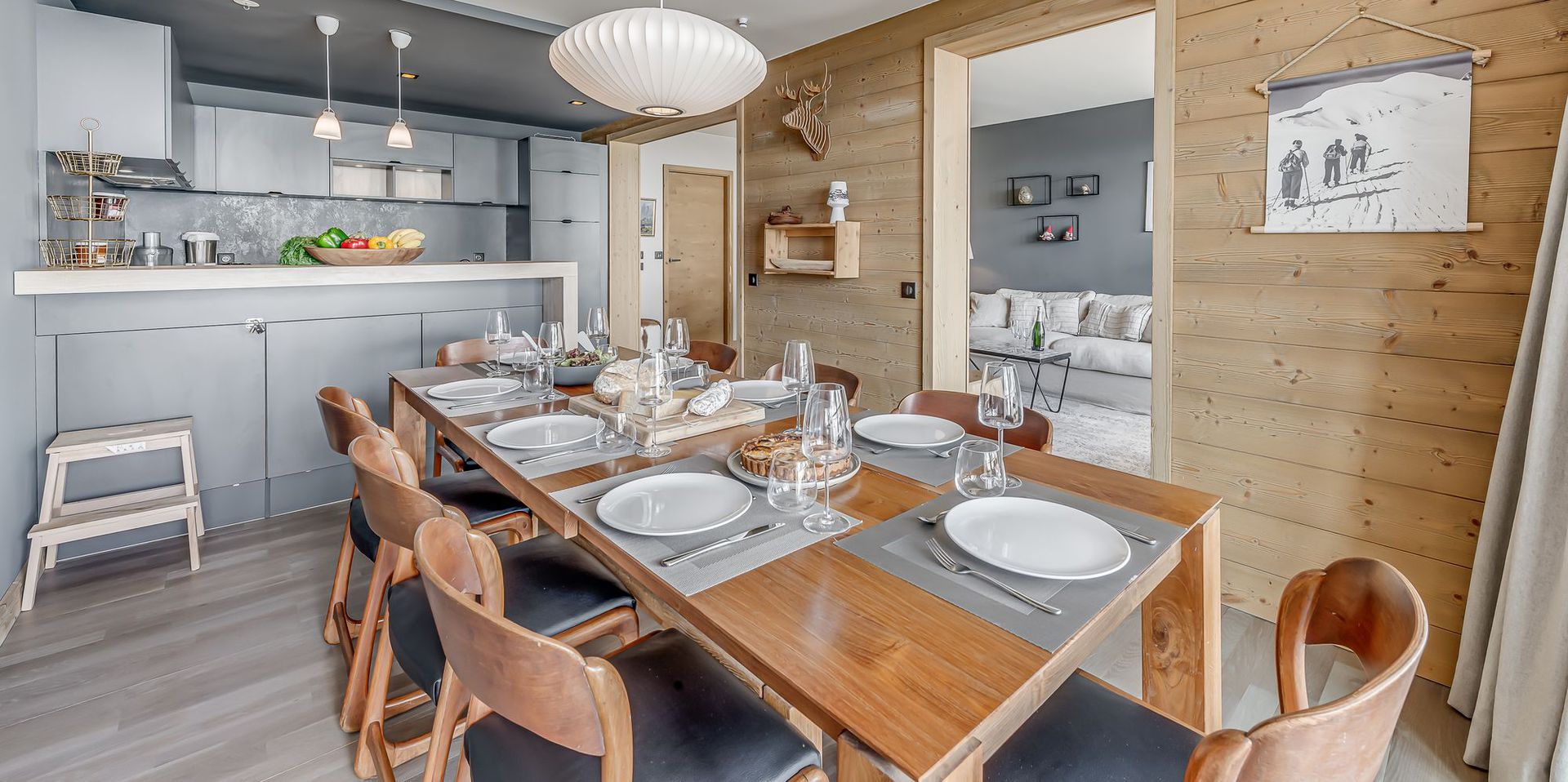 * Un salon - salle a manger spacieux et adaptes a un sejour pour 8 personnes