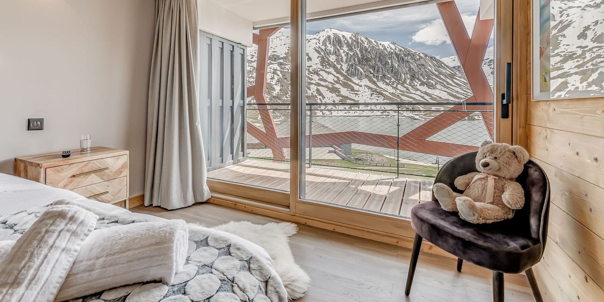 Il possede un balcon expose plein sud, avec vues exceptionnelles et degagees sur le lac naturel de Tignes, les massifs de Toviere et le glacier de la Grande Motte