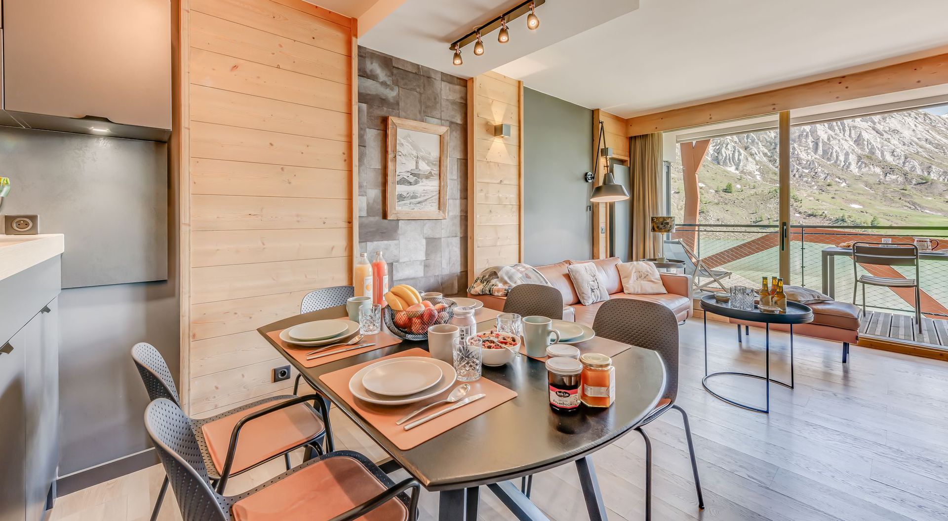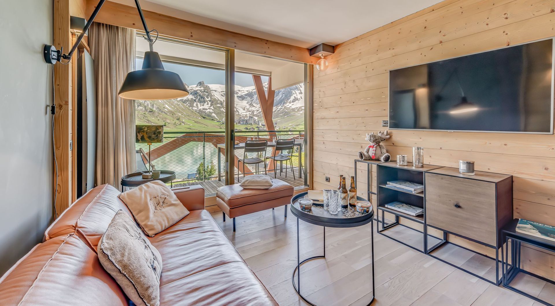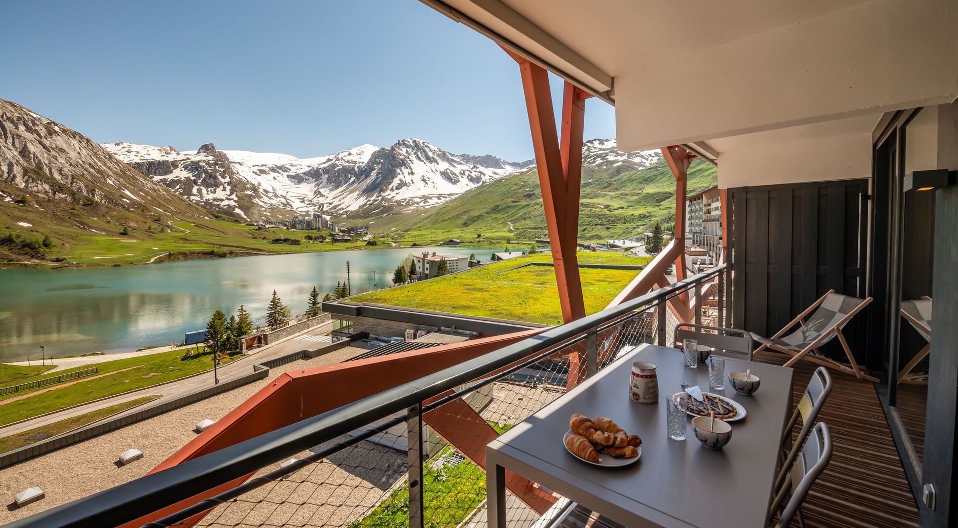 Il possede un balcon expose plein sud, avec vues exceptionnelles et degagees sur le lac naturel de Tignes, les massifs de Toviere et le glacier de la Grande Motte