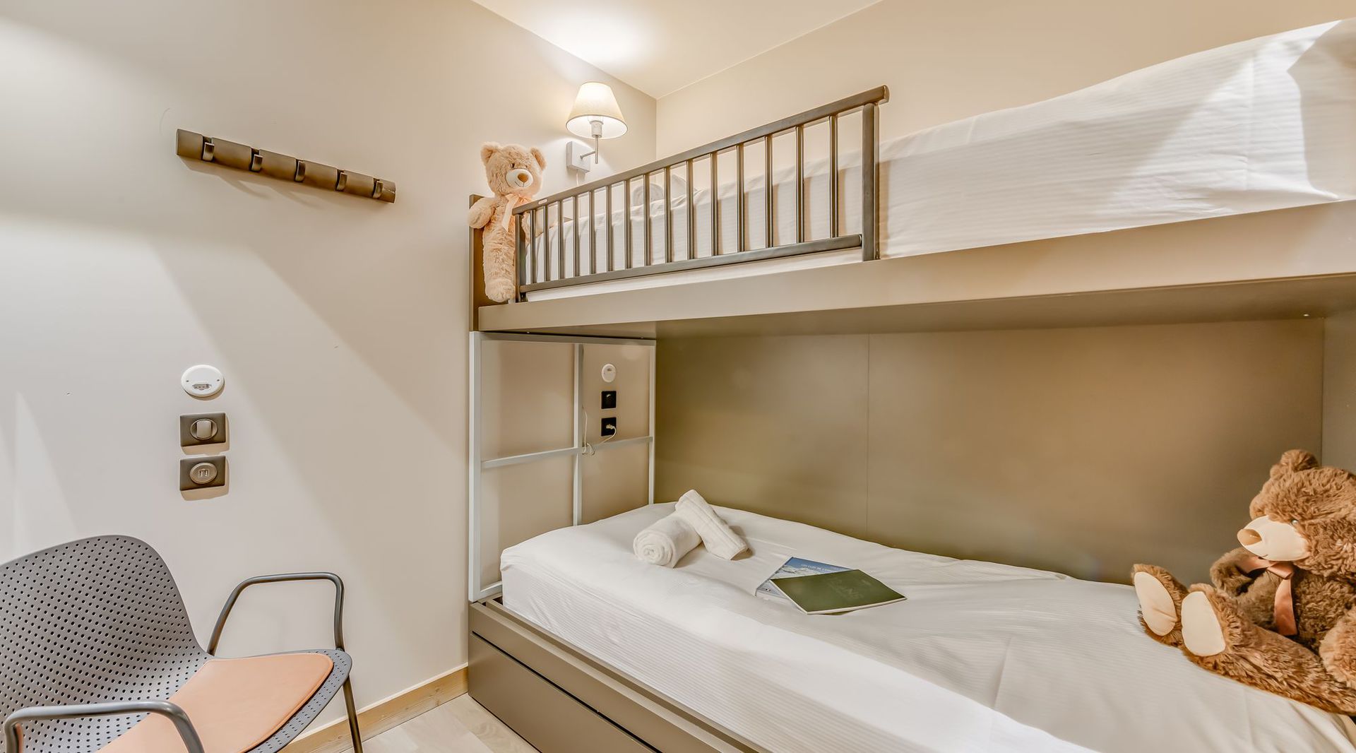 * Un chambre type cabine avec un lit superpose de 2 couchages en 90*190 cm et un lit tiroir en 80*190 cm