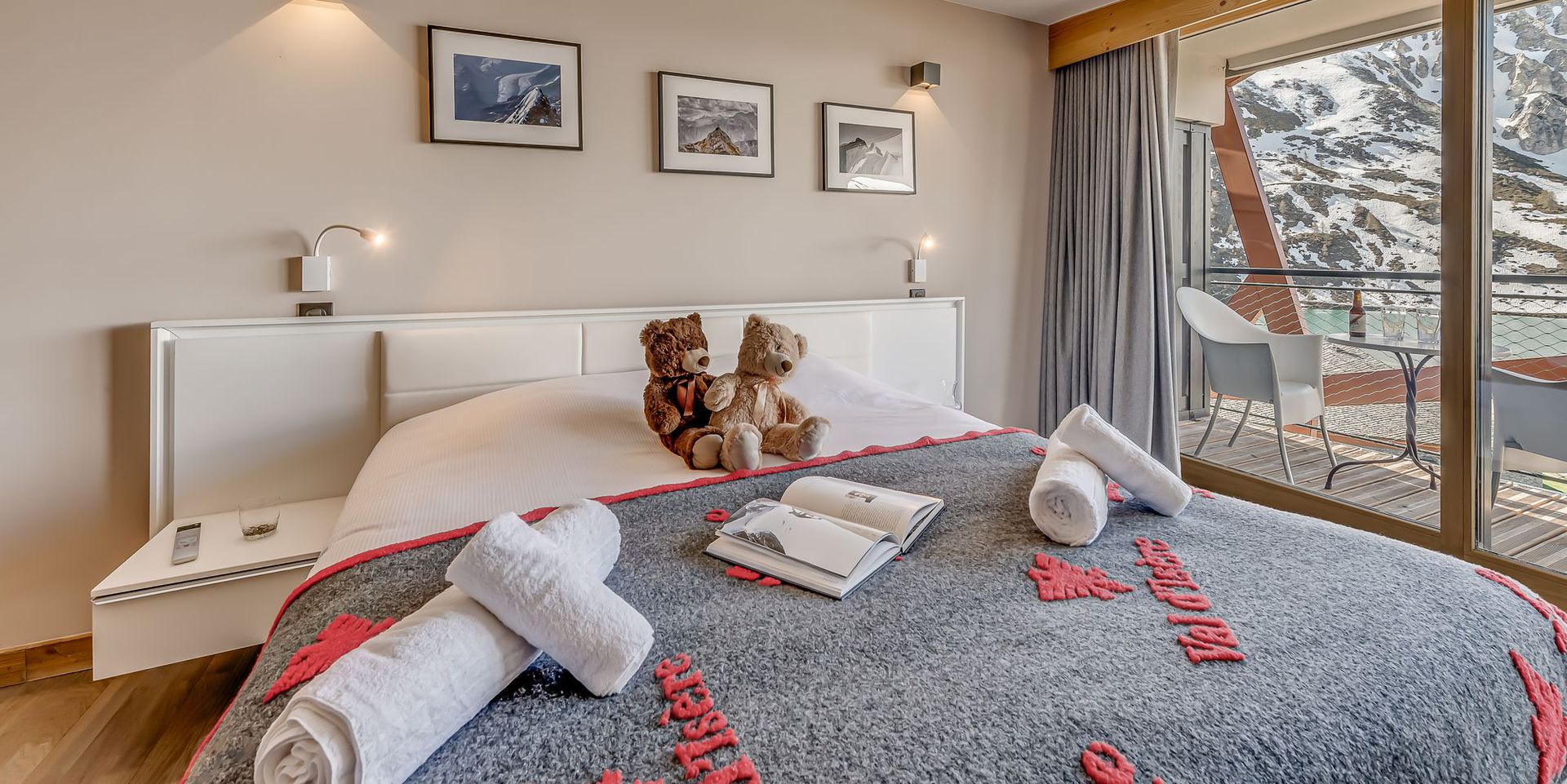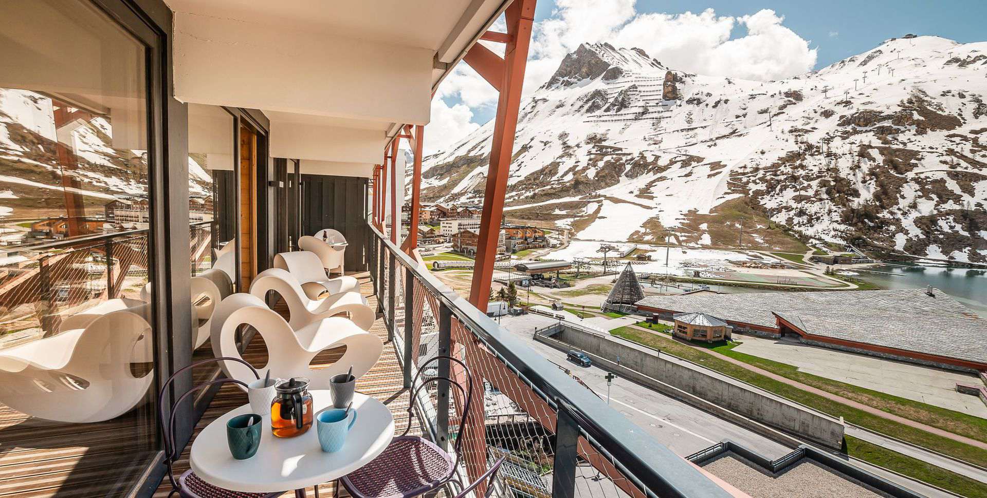 Il possede une balcon expose plein sud, avec vues exceptionnelles et degagees sur le lac naturel de Tignes, les massifs de Toviere et le glacier de la Grande Motte