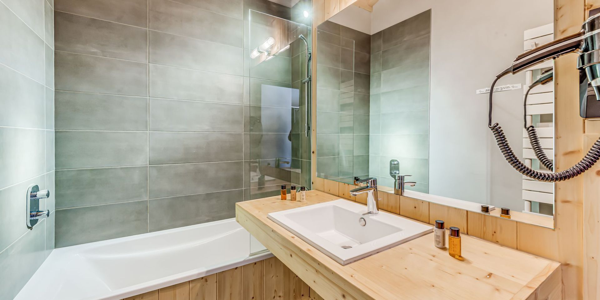 Salle de bains avec baignoire - Meuble vasque - Radiateur Seche serviettes