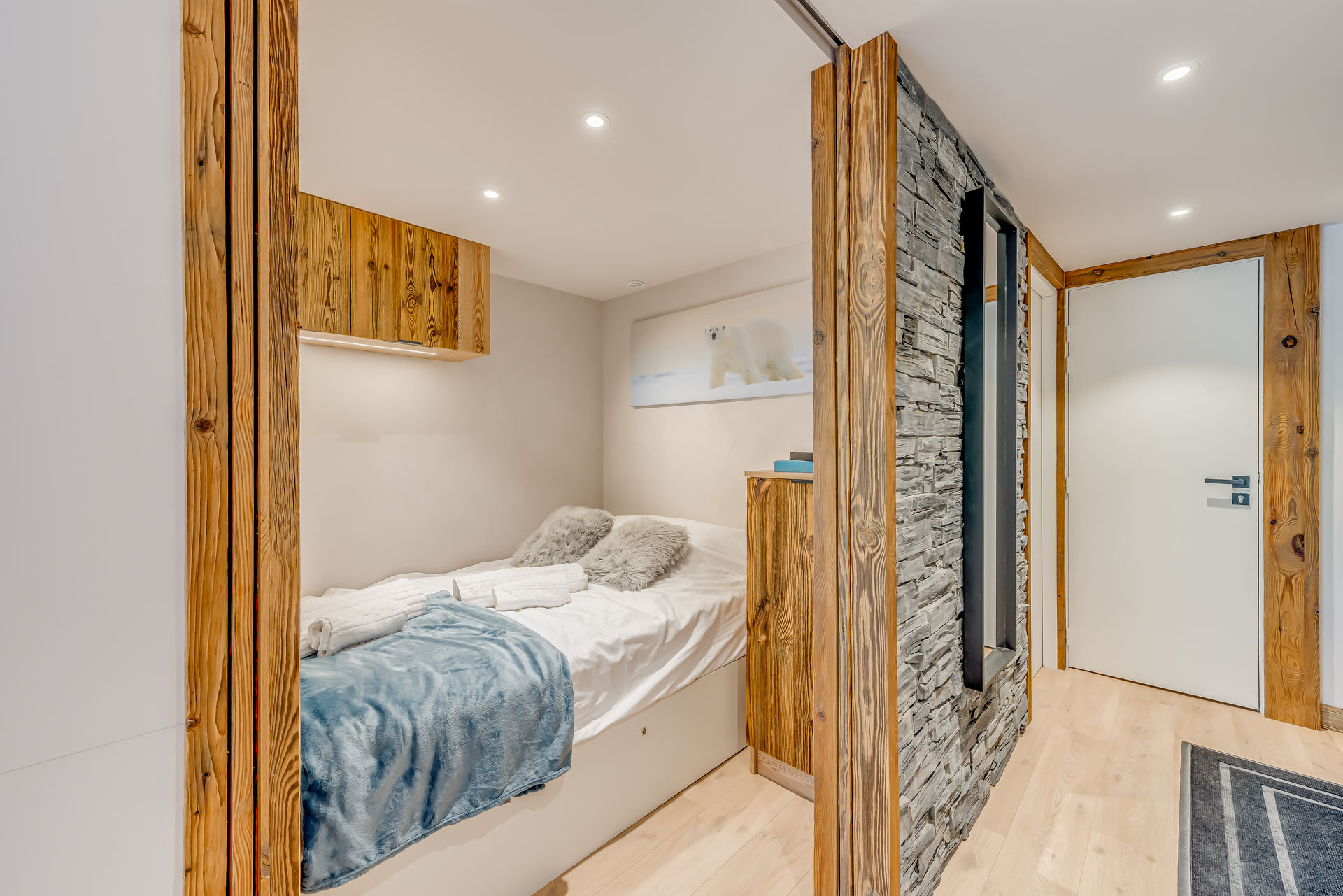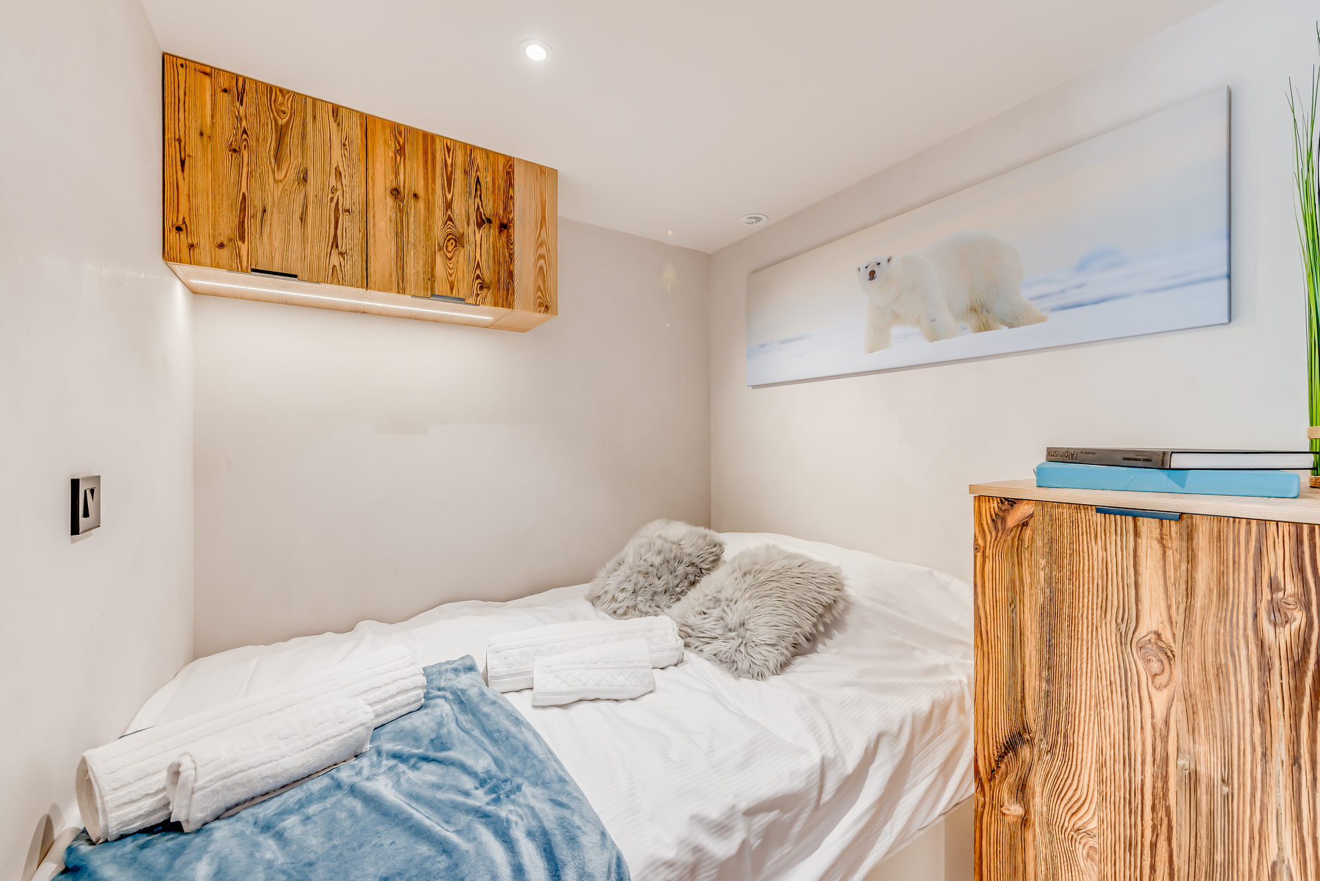 - cabine avec 1 lit double et des portes coulissantes pour isoler l'espace nuit du sejour.