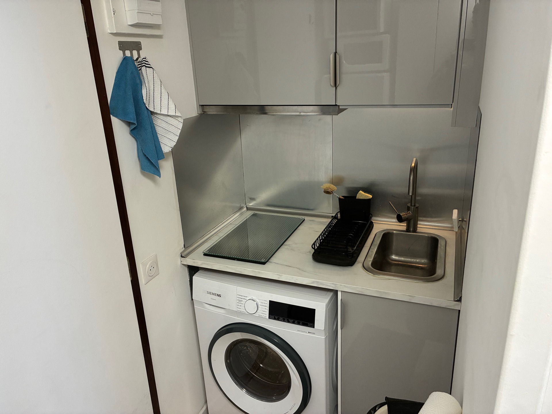 - 1 Cuisine dans l'entree avec evier, table de cuisson 2 feux, lave-linge