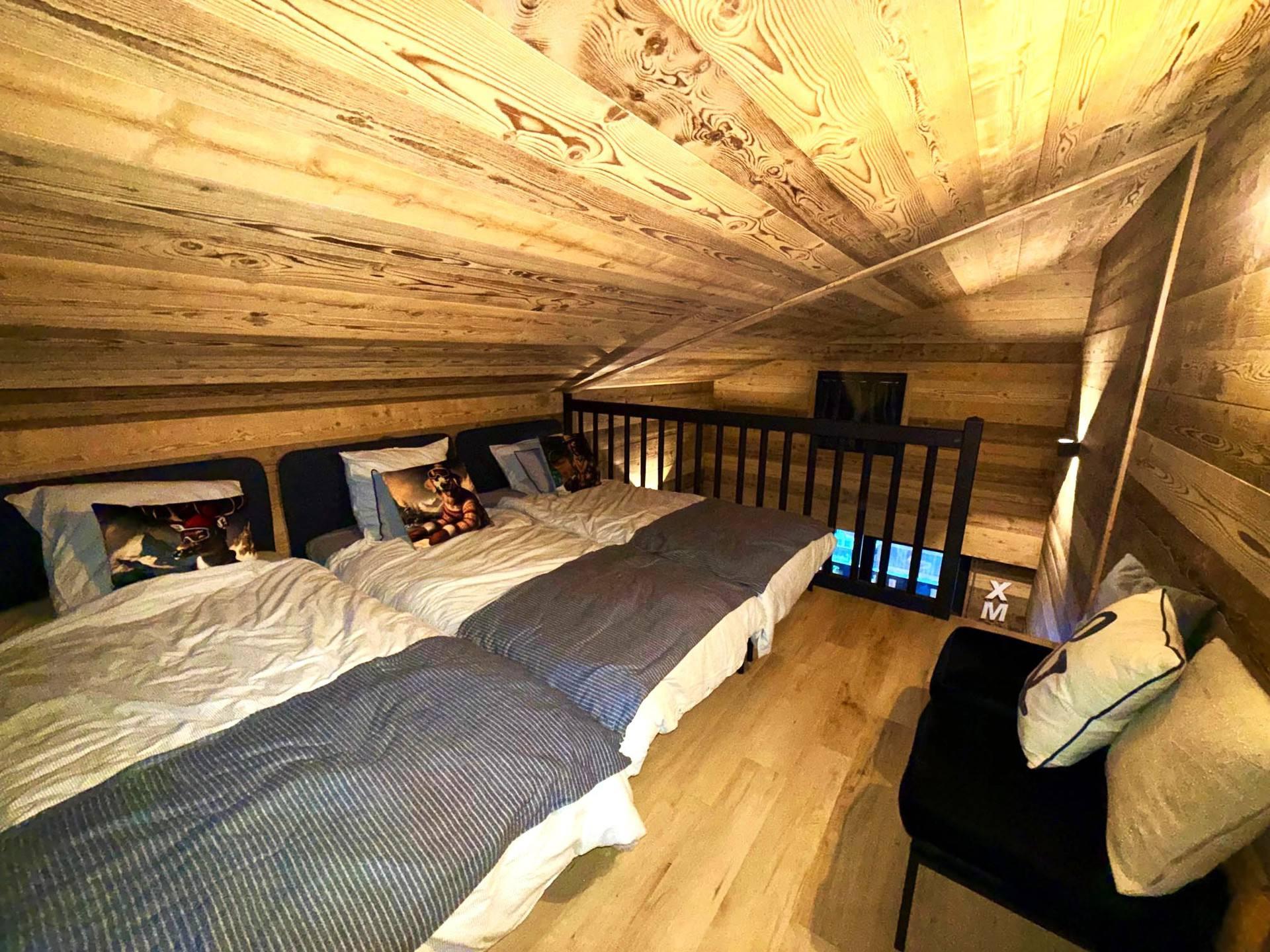 Etage superieur : Mezzanine : Lits - Chambre 2 : Lits, penderie, fenetre nord