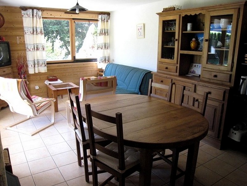Entrée/Hall : Placard-penderie - Séjour (25 m²) avec Coin repas : Table et chaises - Coin cuisine équipée : 4 plaques vitro-céramiques, lave-vaisselle, four, micro-ondes, réfrigérateur (222L), éléments de rangement - Coin salon : Canapé, table basse, télévision, baie vitrée est accès terrasse et jardin, vue montagne - Salle de bains : Baignoire, lavabo, lave-linge, sèche-serviette électrique - wc - Chambre 1 (10 m²) : 1 lit, placard, fenêtre est vue montagne - Chambre 2 (12,36 m²) : 3 lits, placard, fenêtre nord vue montagne - wc et lave-mains.