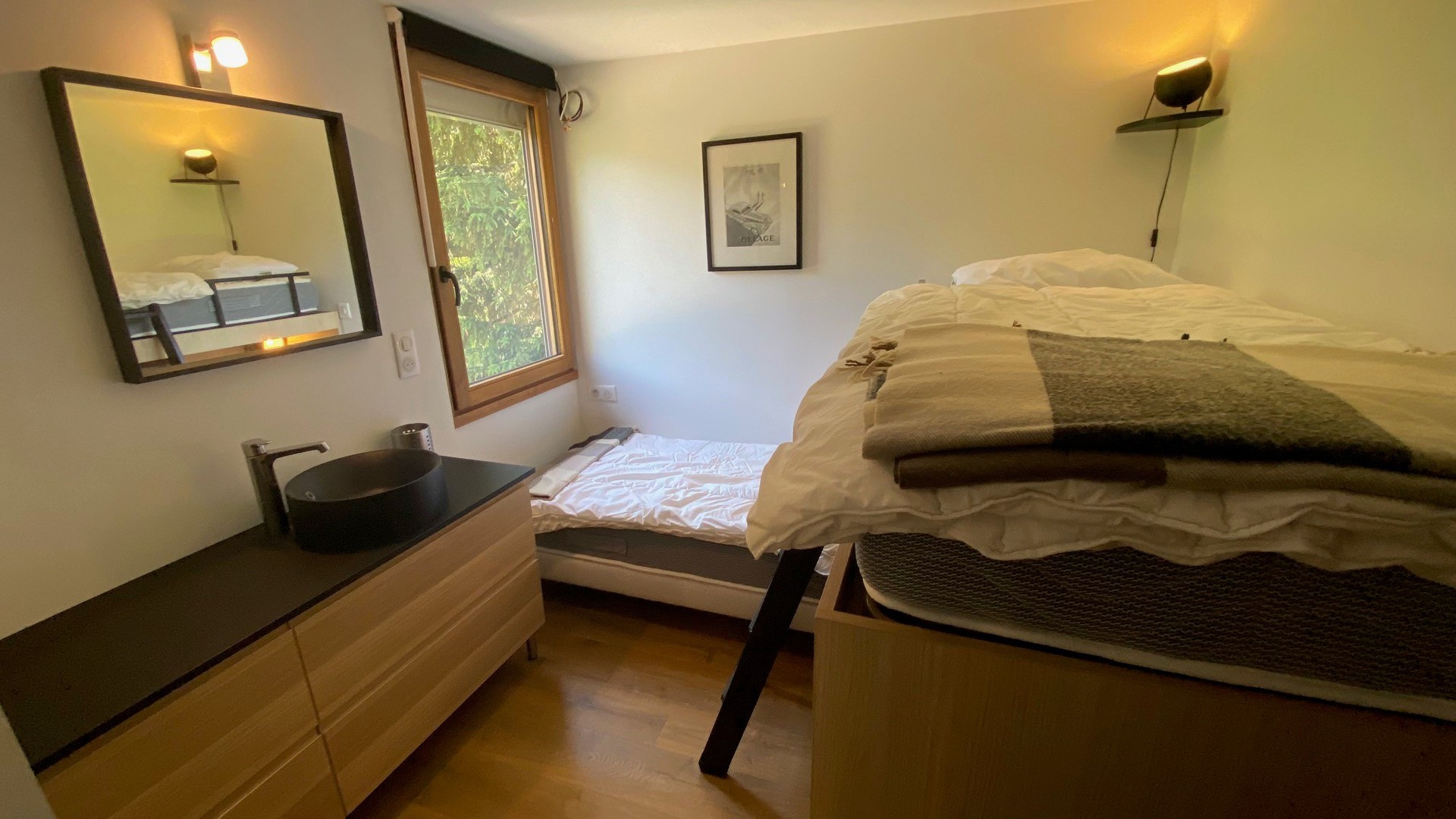 - Chambre 2 (6.70 m2 + 0.85m2 douche) : 2 lits superposes 90 cm pour 2 personnes