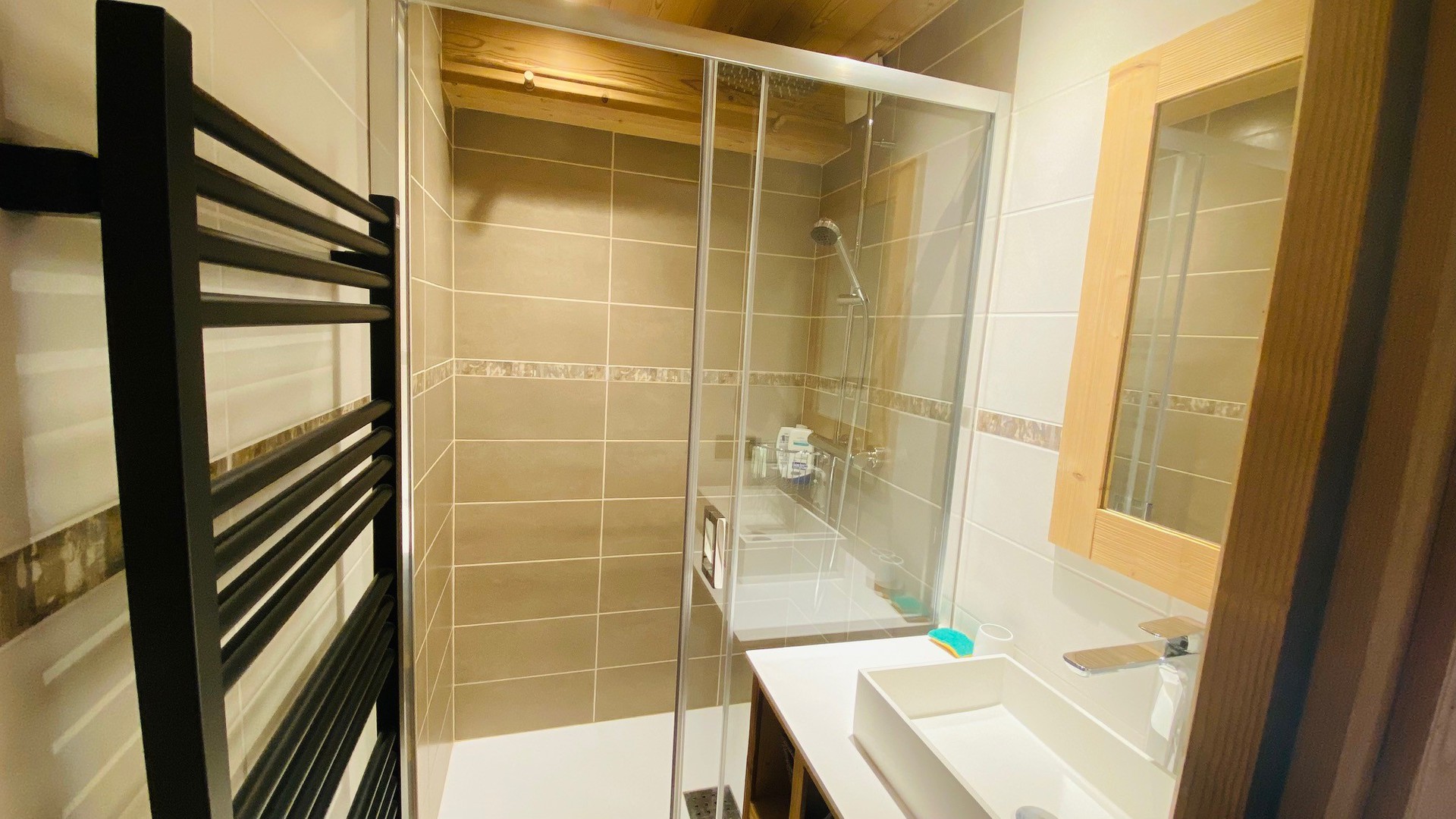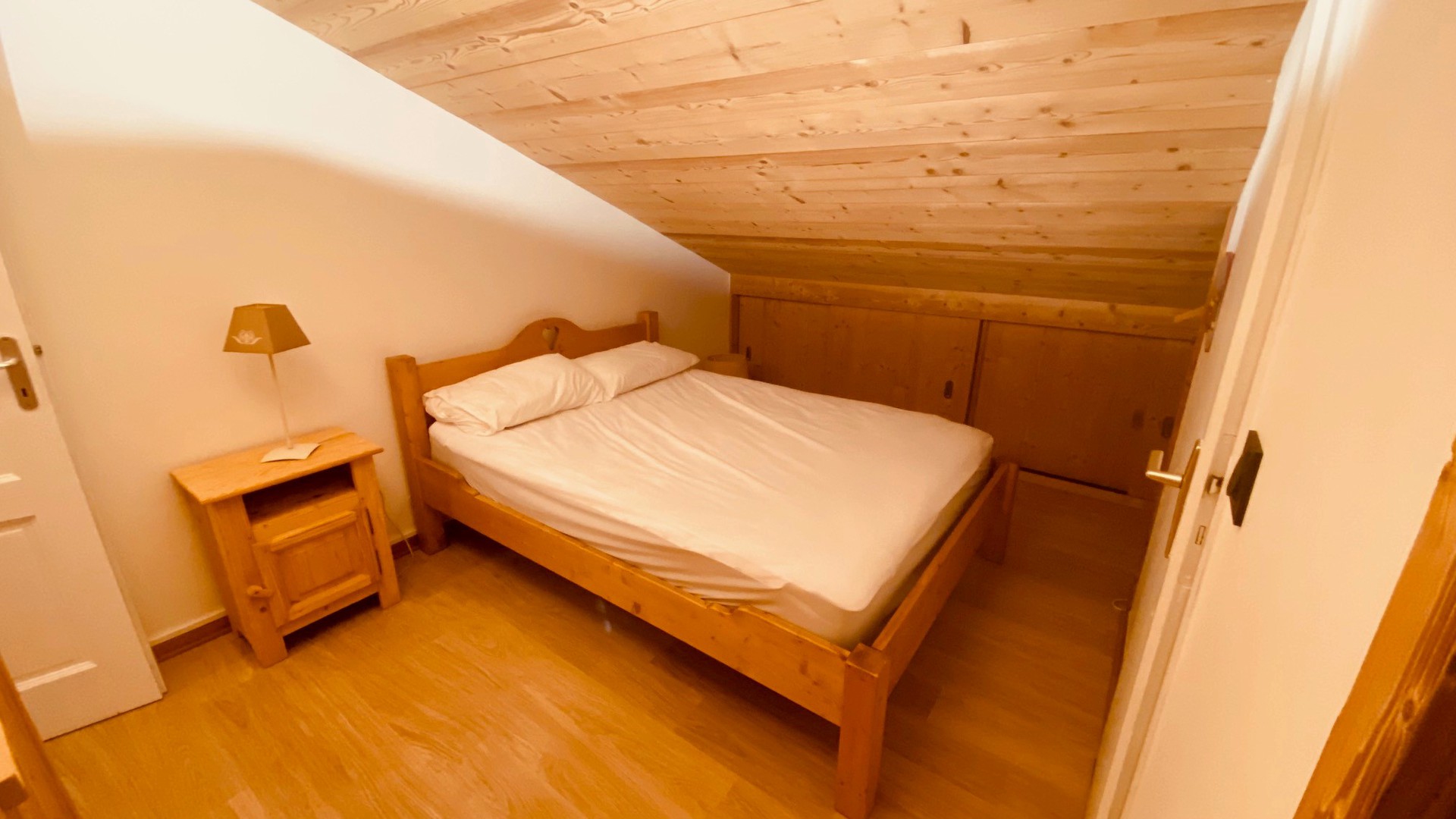Etage superieur : Chambre 2 en partie mansardee (6.76 m2) : 1 lit simple + 1 lit gigogne (possibilite de faire un lit double ou 2 lits simples)- Chambre 3 en partie mansardee (13 m2 dont 8,80 m2<1,80) : lit double , placard, fenetre est vue montagne - Cabinet de toilette mansarde avec lavabo et wc.