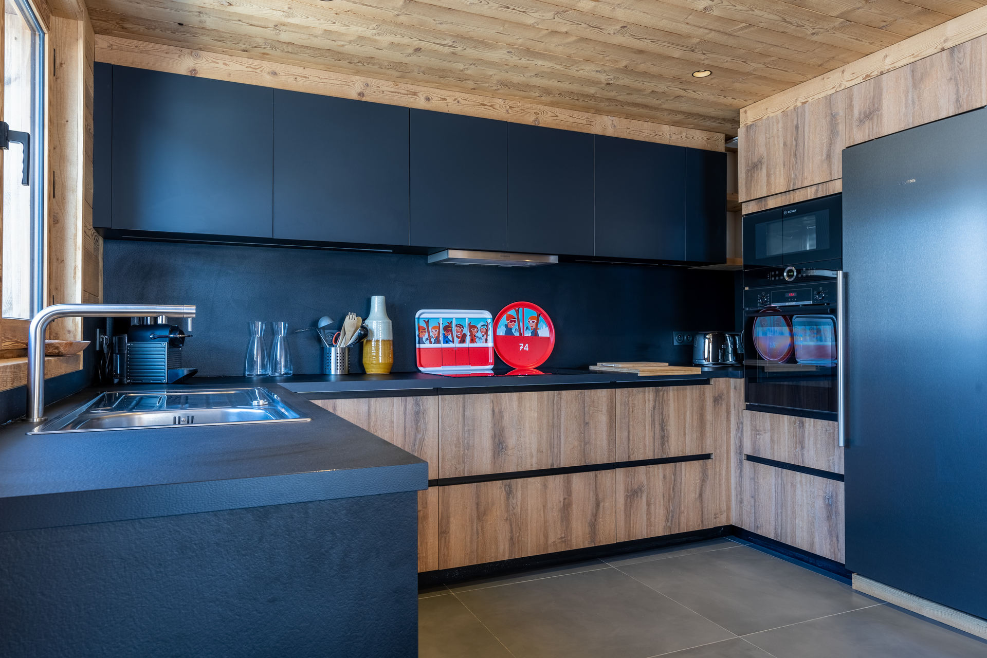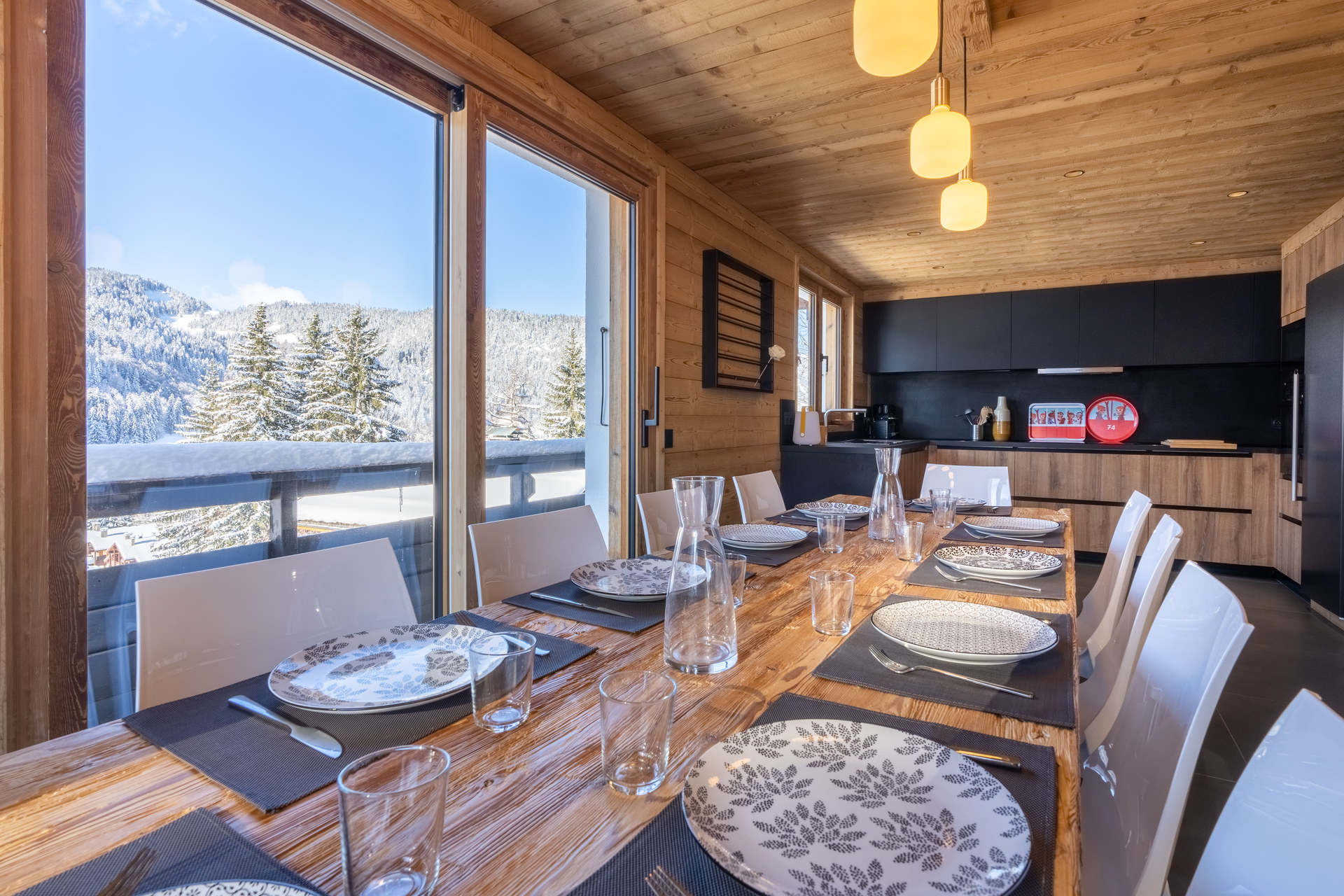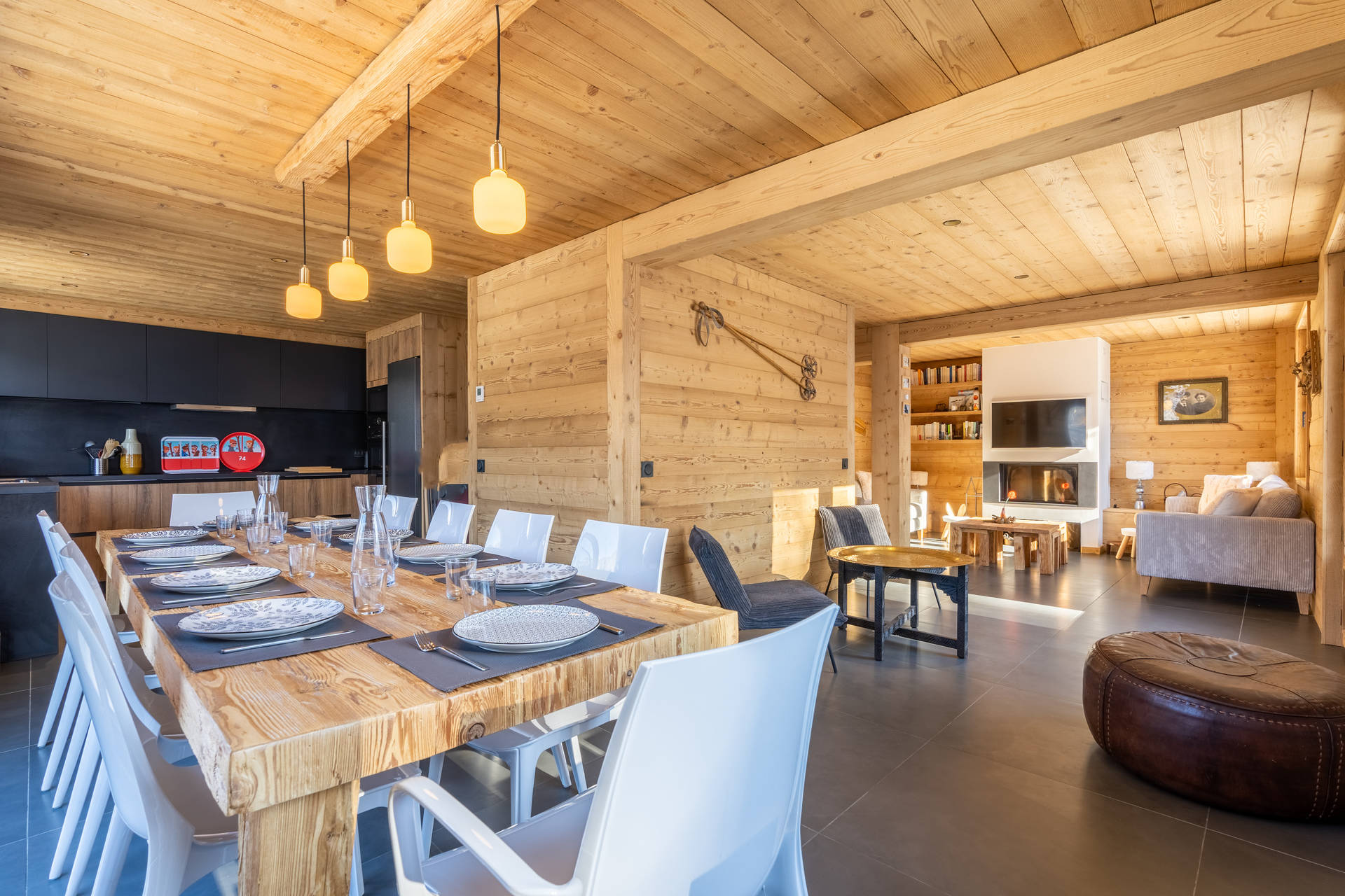 Au premier etage : grand sejour tres lumineux avec table 12 places, vue imprenable massif de Beauregard et massif de l'Etale), salon avec cheminee et TV connectee, systeme audio Bluetooth, cuisine equipee : grand refrigerateur, four, micro-onde, plaques de cuisson a induction, lave-vaisselle, bouilloire, cafetiere a filtre, Nespresso, grille-pain, appareil a raclette (x2), appareil a gauffres, terrasse Sud et balcon ouest: mobilier de jardin, plancha l'ete, WC independant, chambre double avec lit 160x200, salle de bain avec baignoire.