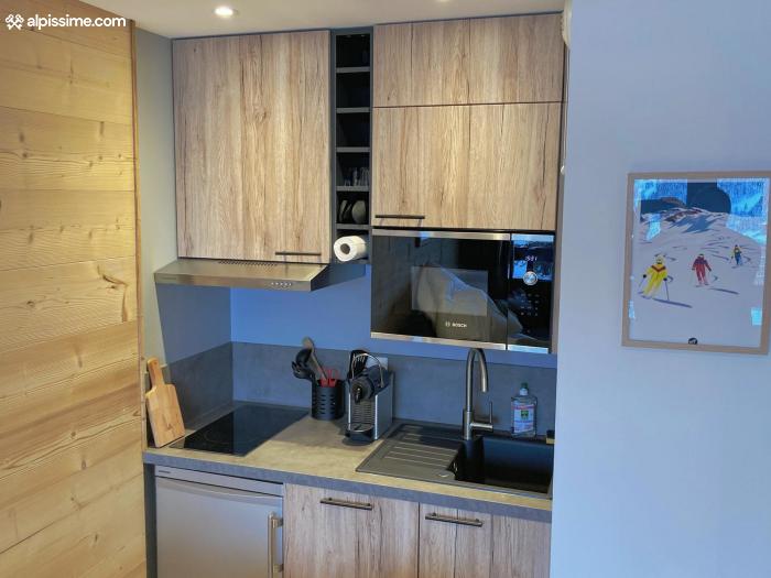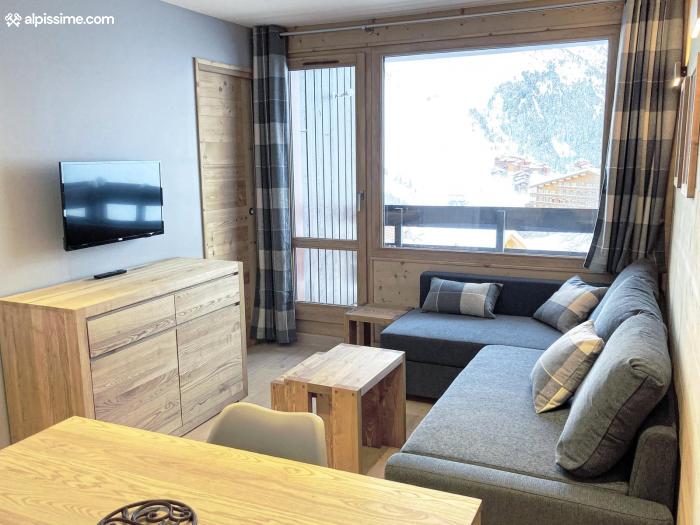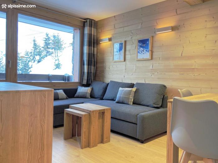 2 pièces + coin montagne fermé (28 m2), dans un petit immeuble calme, avec accès direct aux pistes depuis le casier à ski, à proximité des commerces et des transports.