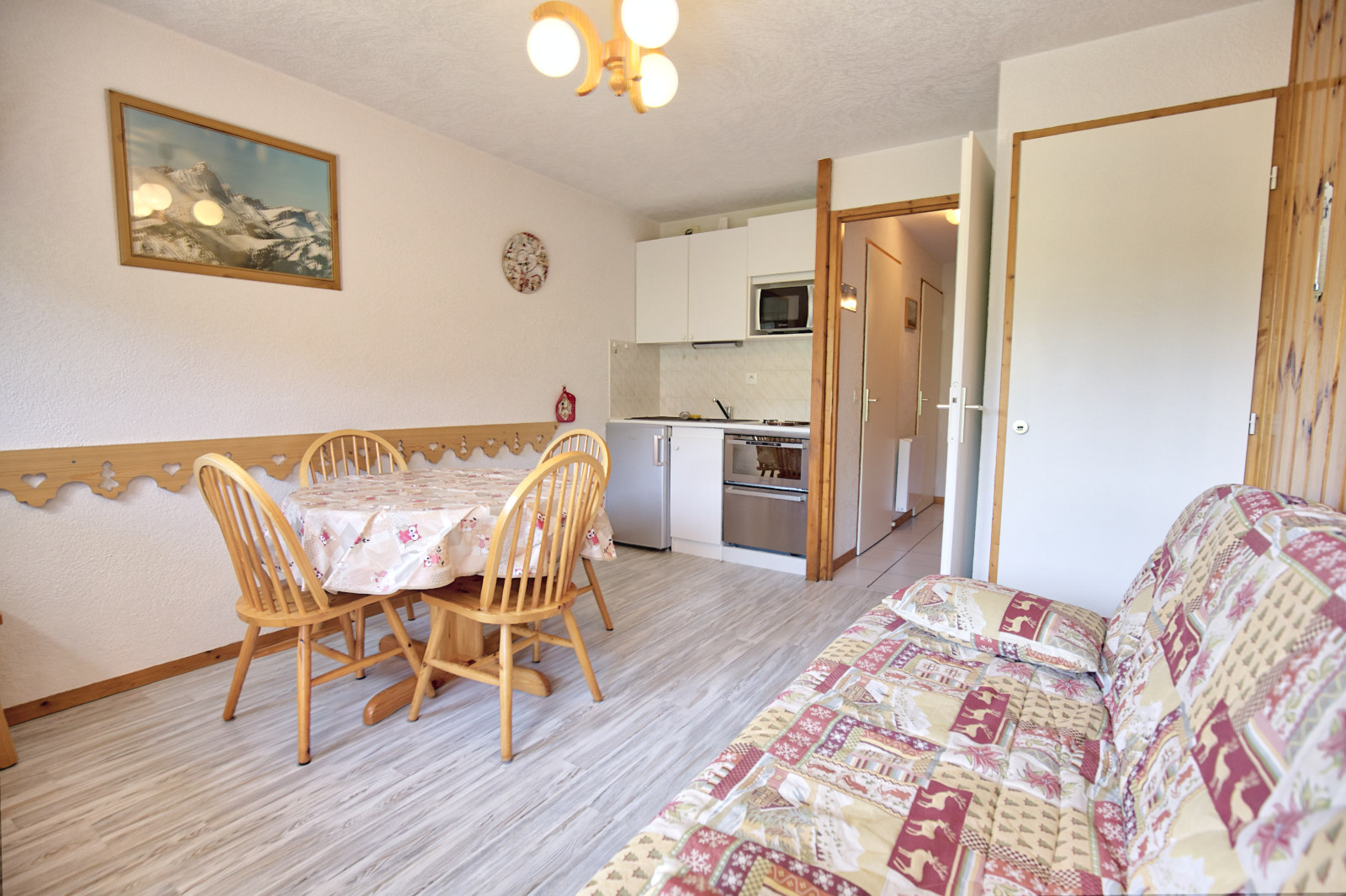 Appartement de 32m2 situe au rez de chaussee de cette residence avec un agreable balcon expose sud, et une superbe vus sur le Mont Charvin et la vallee pour 5/6 personnes.