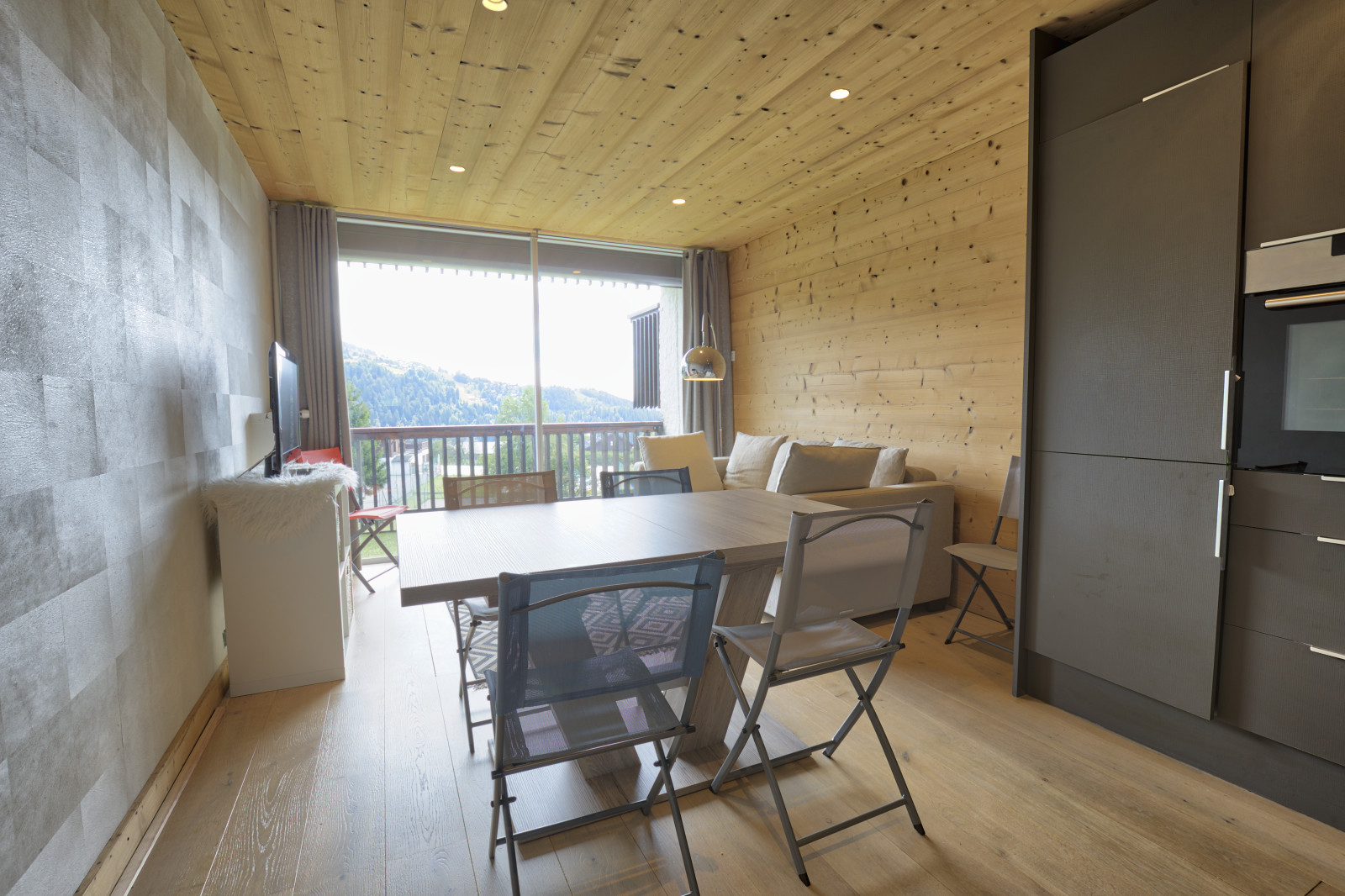 Tres bel appartement pour six voyageurs dans une residence au pied des pistes de skis de l'Espace Diamant. D'une surface de 43 m2 au 3eme etage, vous allez adorer son balcon en exposition sud offrant une vue degagee sur le village, le Mont Charvin et la vallee.