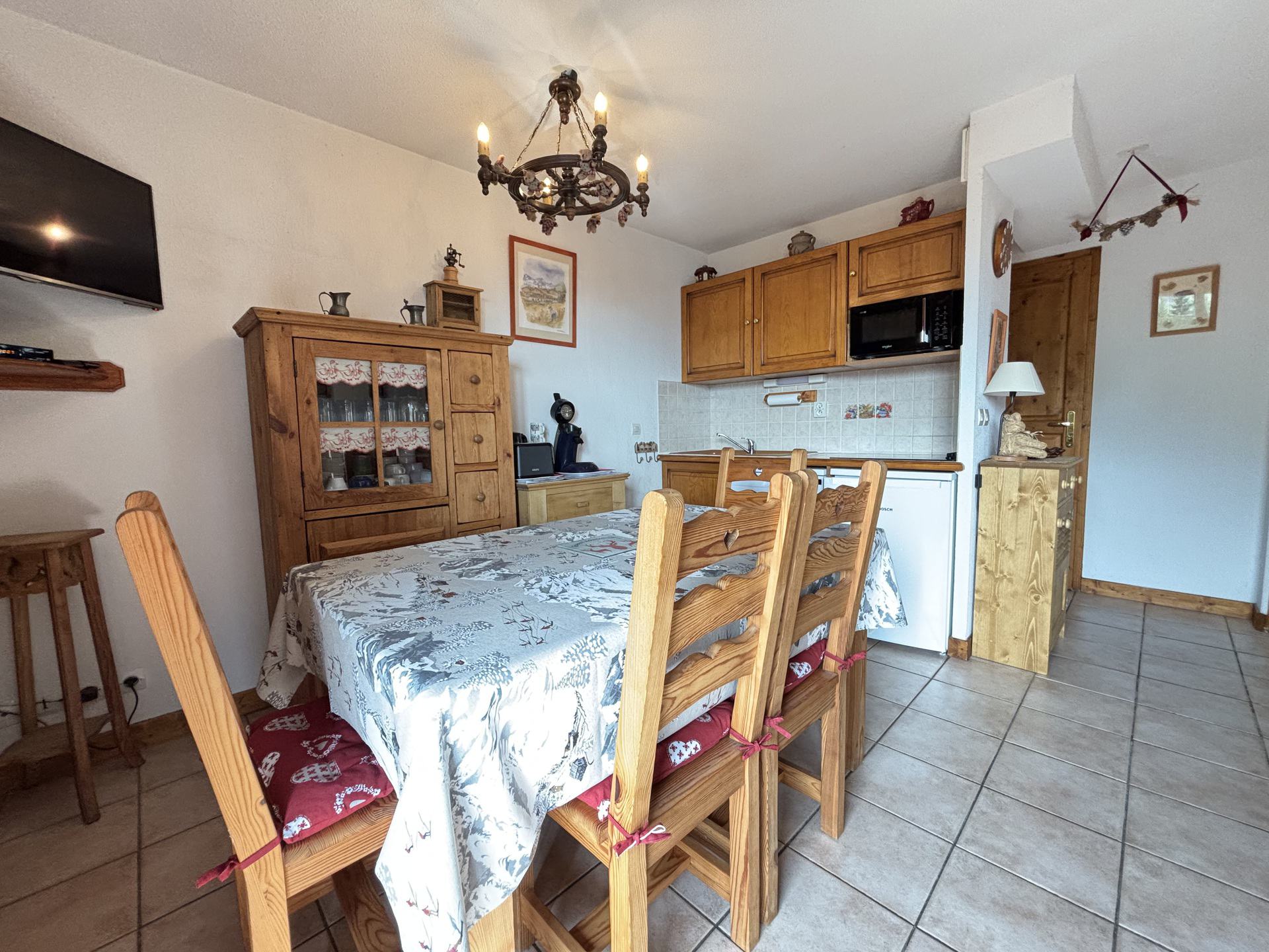 A 1350m, au pied des pistes du Mont Rond, appartement de 39 m2 pour six personnes. Situe au premier etage son balcon NORD offre une vue sur le Mont Charvin et la vallee et le balcon ouest, une vue sur le depart des pistes.
