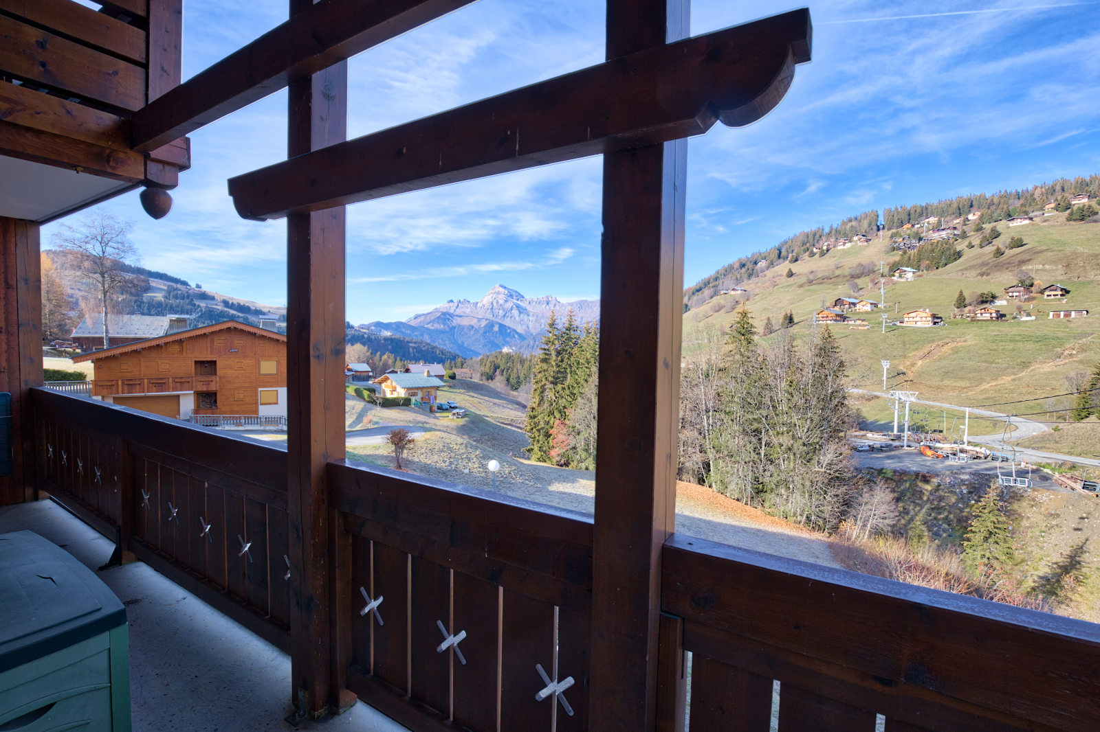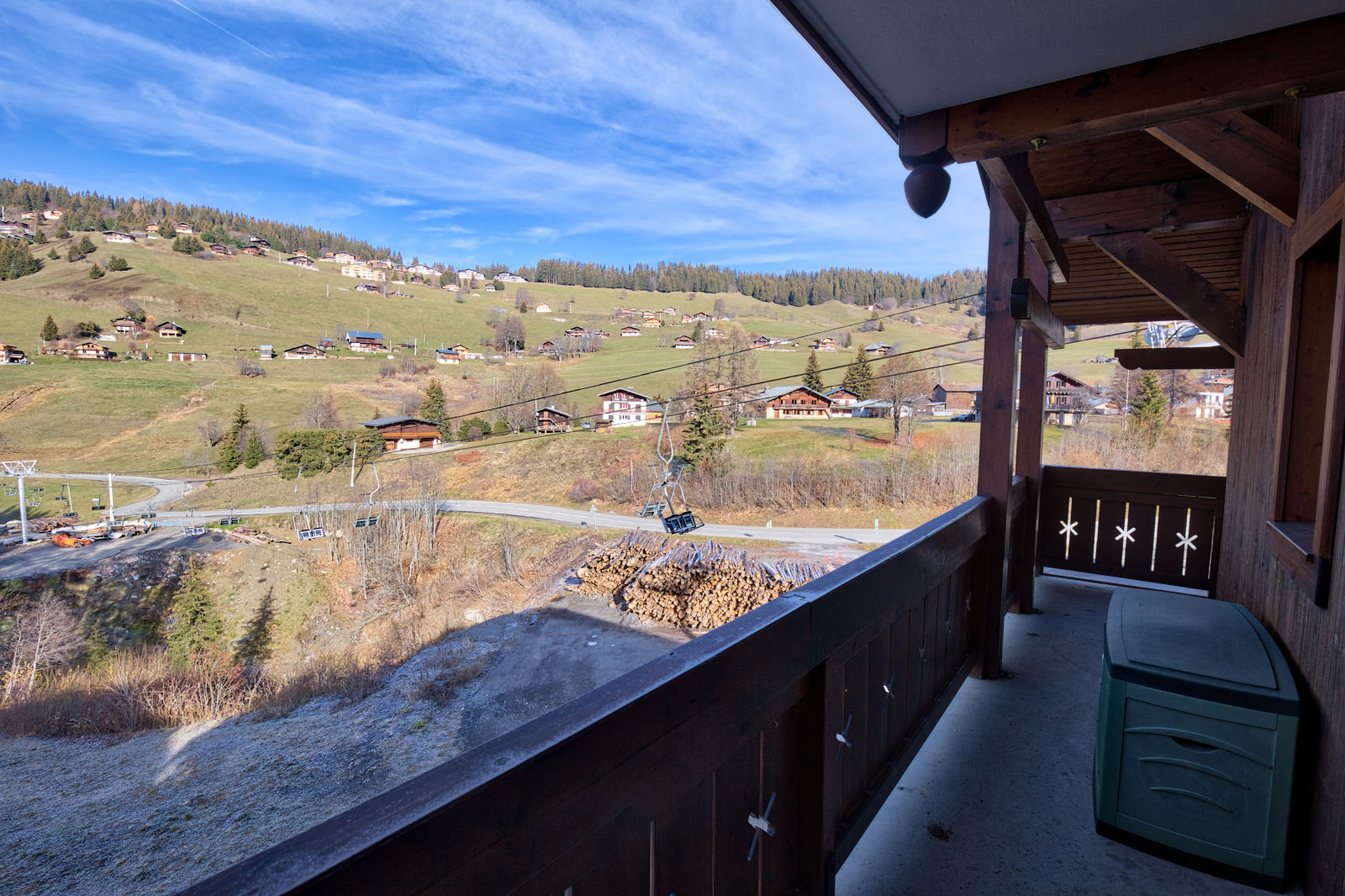 Au pied des pistes du Mont Rond, a 1350m, appartement de 33m2 pour cinq personnes. Situe au deuxieme etage, il offre un grand balcon d'angle NORD EST de 8 m2 avec vue sur le Mont Charvin, Lachat et la vallee.
