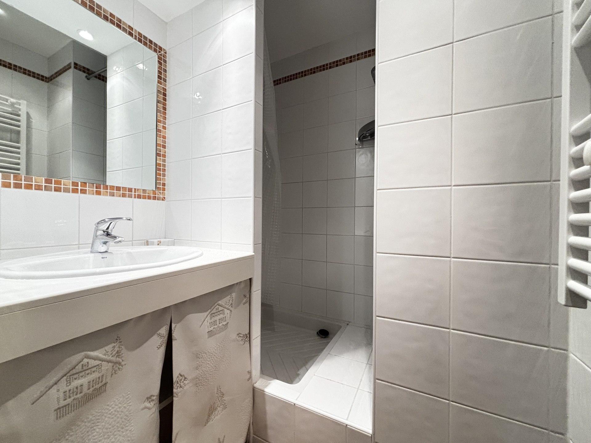 Une seconde salle d'eau avec douche et meuble vasque