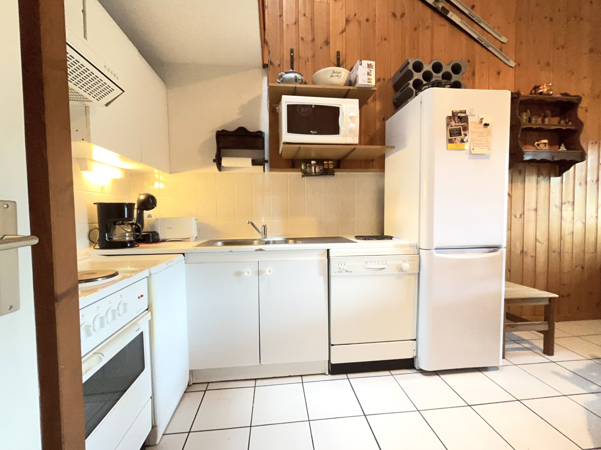 - Sejour avec television ecran plat, cuisine ouverte equipee : 4 plaques electriques, four, micro-ondes, lave vaisselle, refrigerateur, congelateur, LAVE LINGE.