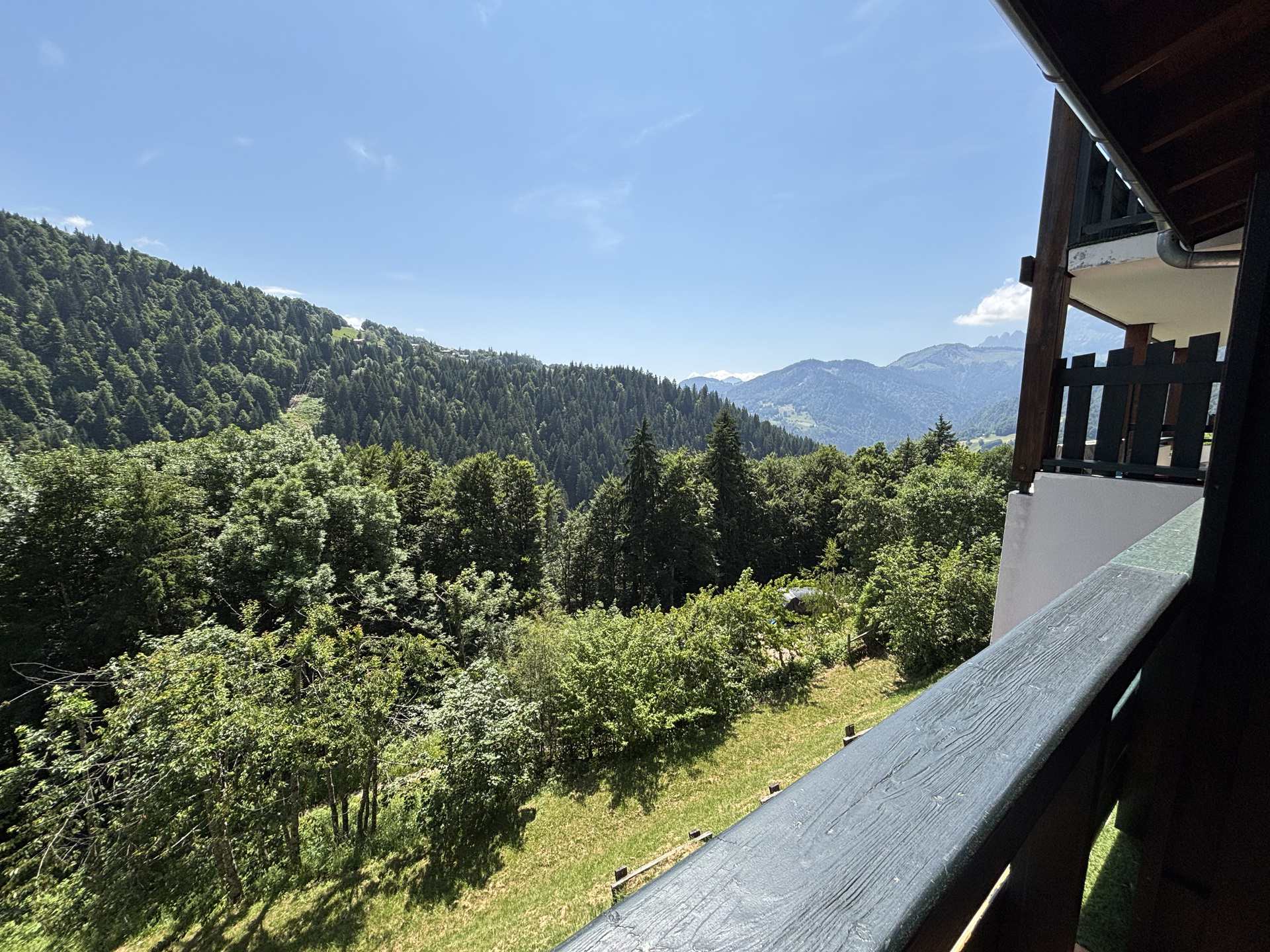 Chaleureux duplex de 42m2 + 12.5m2<1.80m au premier etage de cette residence calme, avec balcon Sud offrant une jolie vue sur le Mont Charvin et la vallee.