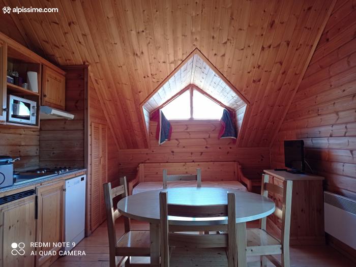 location appartement au pied des pistes de la station de Saint Jean d'Arves(domaine des Sybelles 320 km de pistes) de 6 couchages situé dans la résidence Les Chalets des Marmottes a 50m des commerces et moins de 100m du télésiège