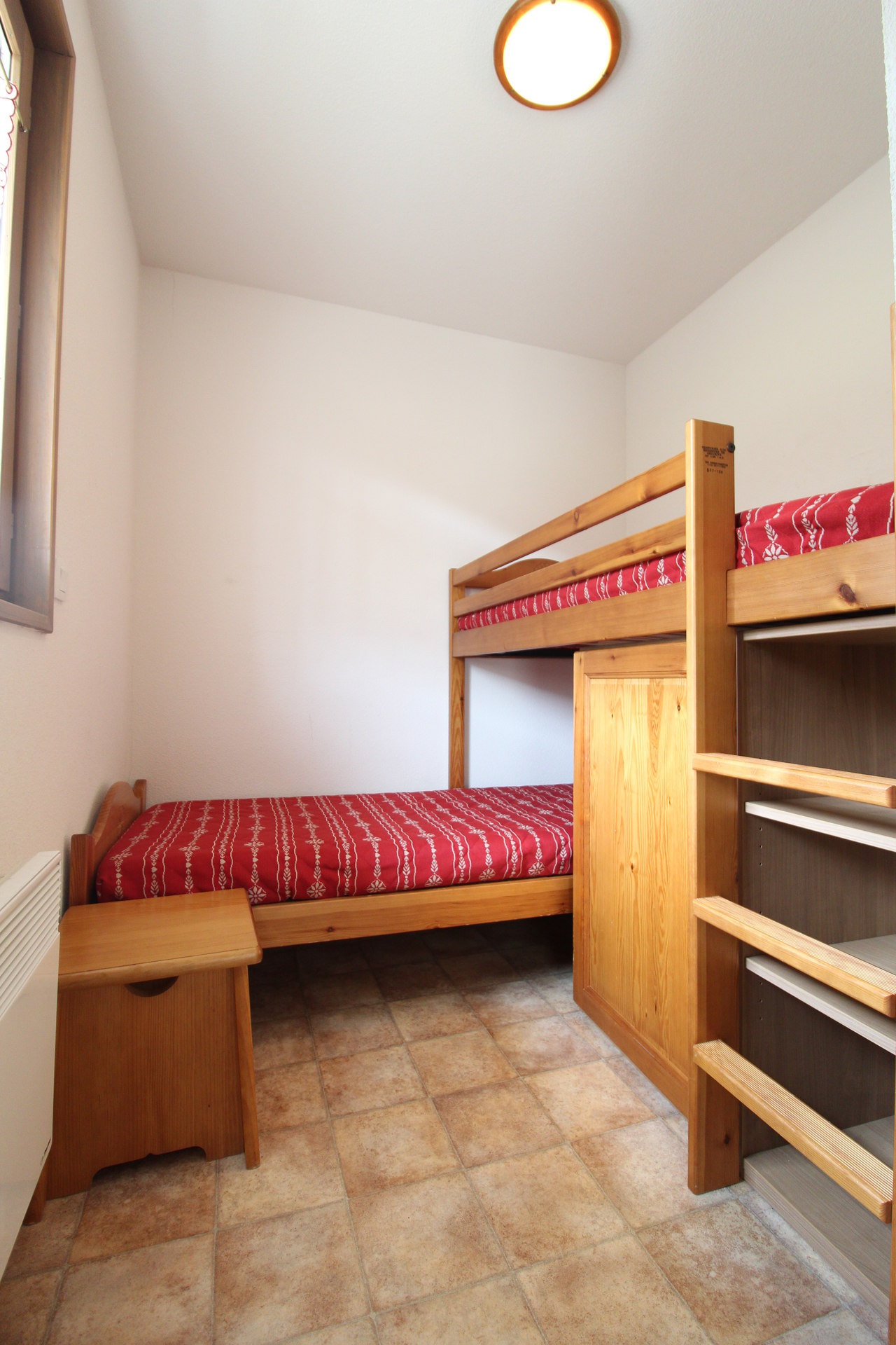 Chambre 2 (fermee par une porte coulissante) : 1 lit 1 place + 1 lit sureleve 1 place.