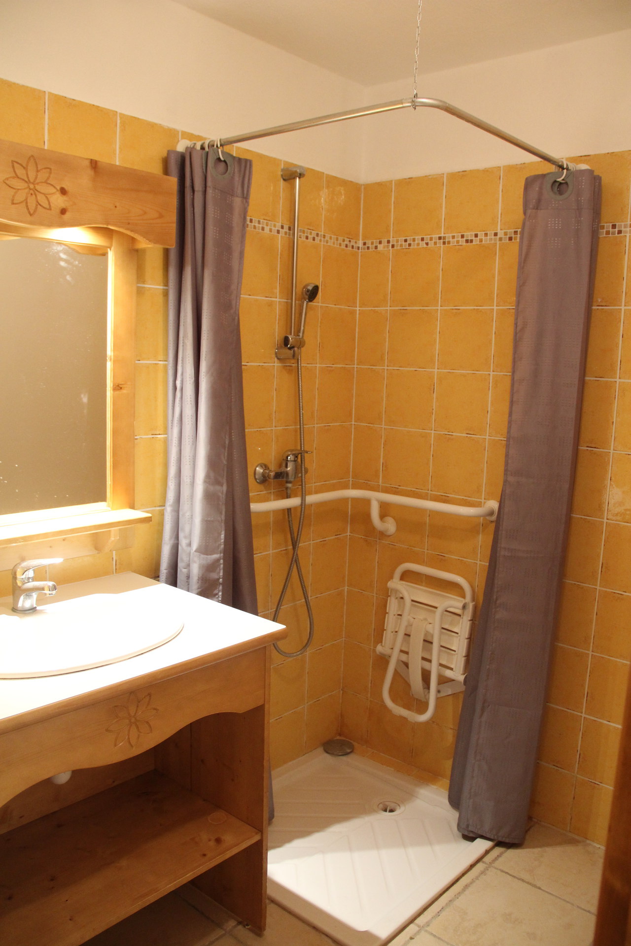 Salle de bain : douche, lavabo et WC séparés