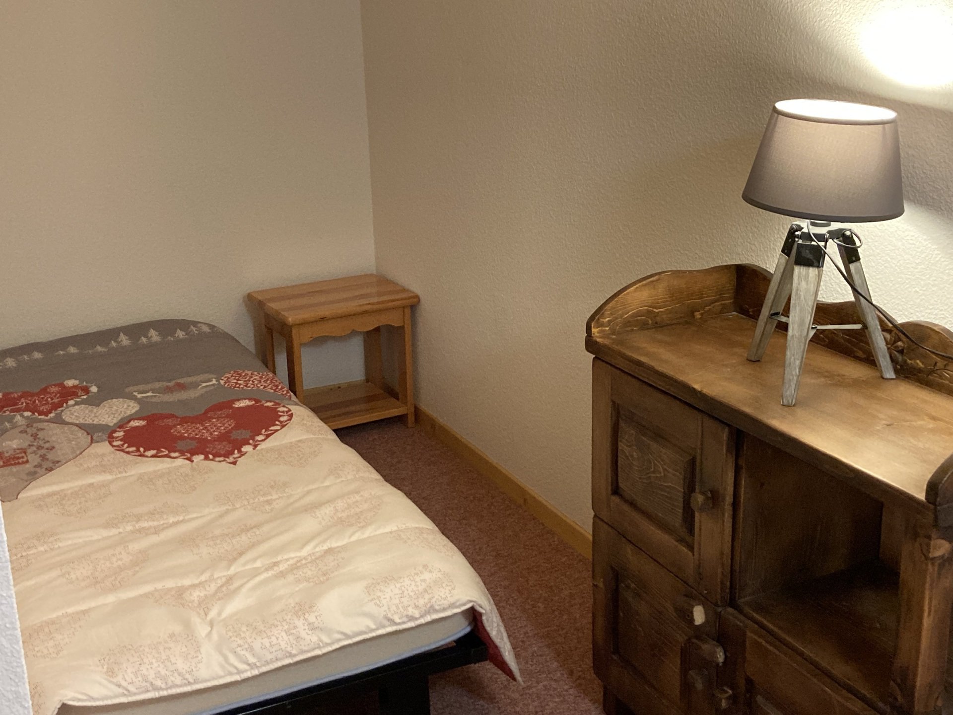 Chambre fermee en mezzanine : 1 lit double + 1 lit simple