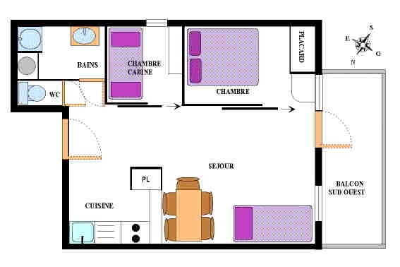 Exposition : Sud avec grand balcon (vue sur les pistes)