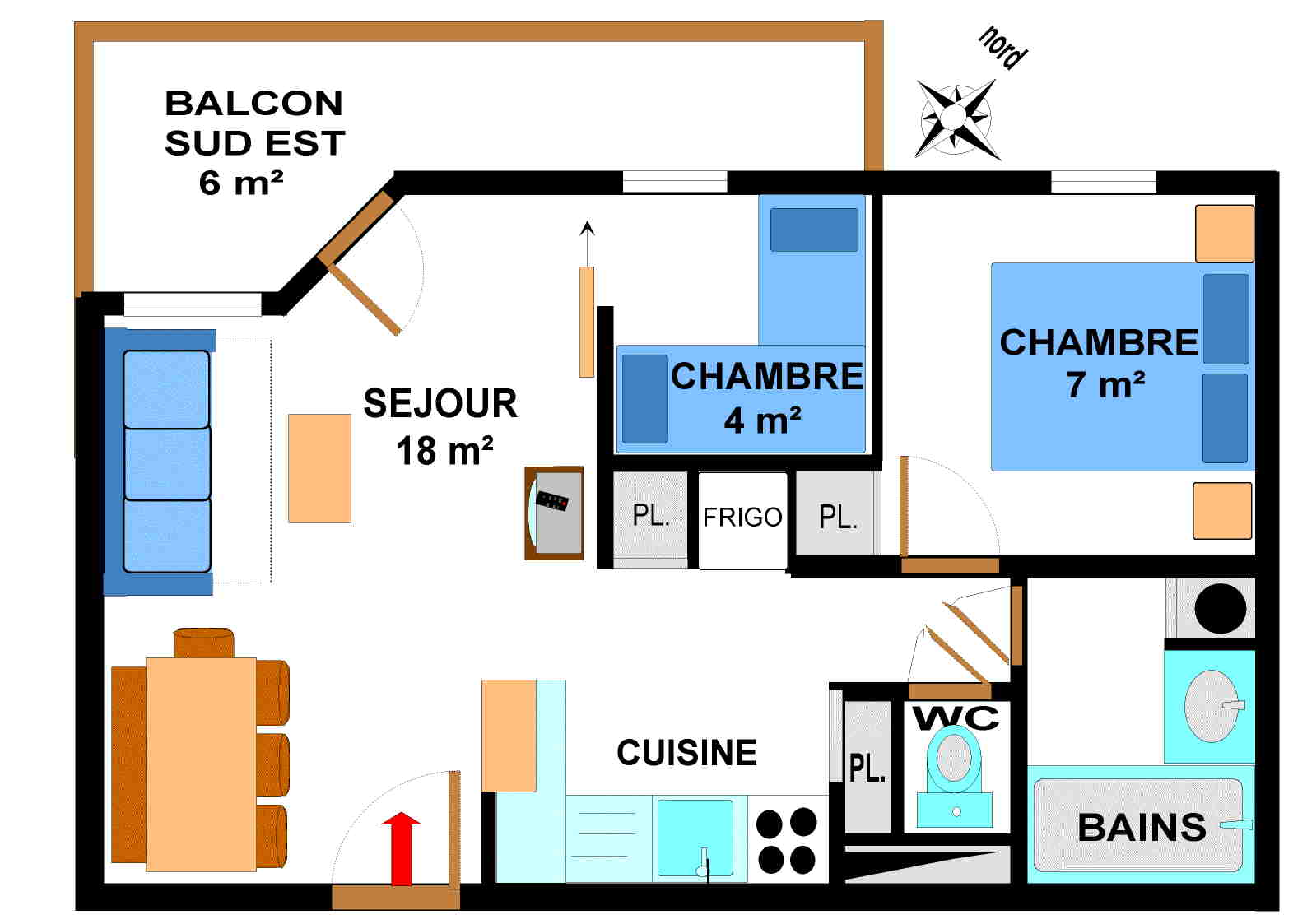 A Lanslevillard-Val Cenis, dans la résidence "Au bonheur des pistes", agréable appartement 6 personnes.