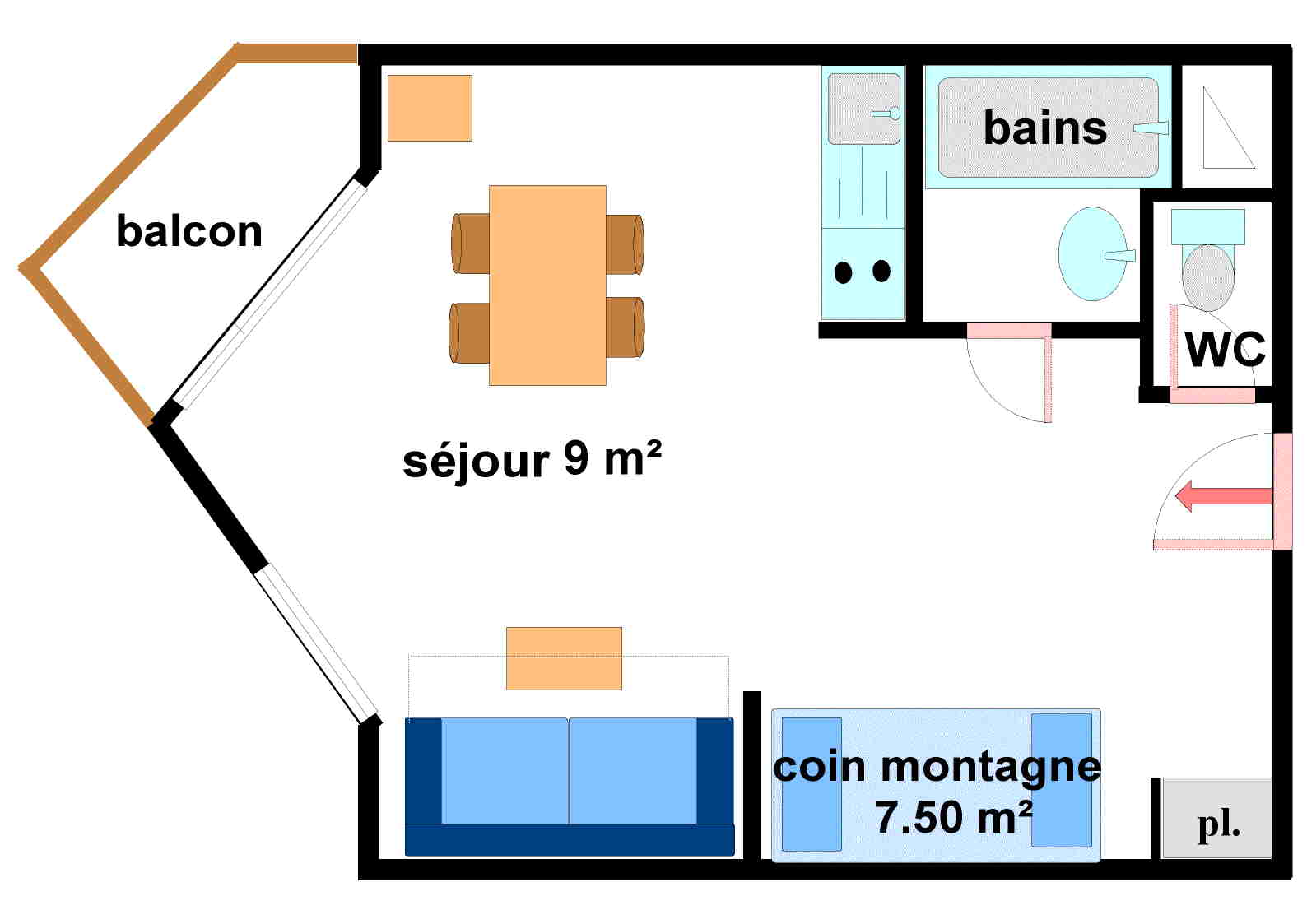 Dans la Residence "Les Hauts de Val Cenis", appartement pour 4 personnes.