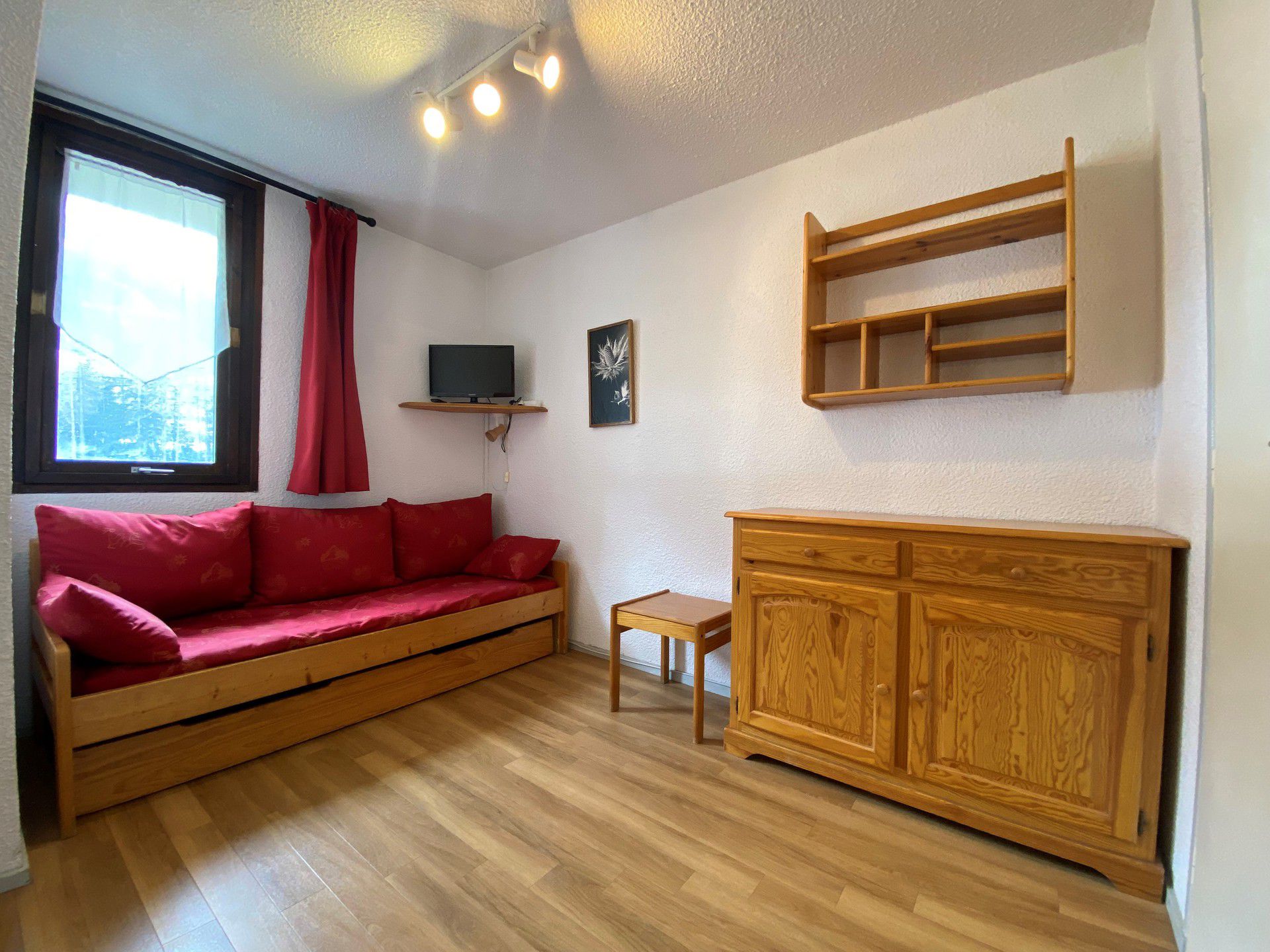 Séjour : 1 banquette gigogne 2 x 1 place + 1 lit 1 place. Télévision.