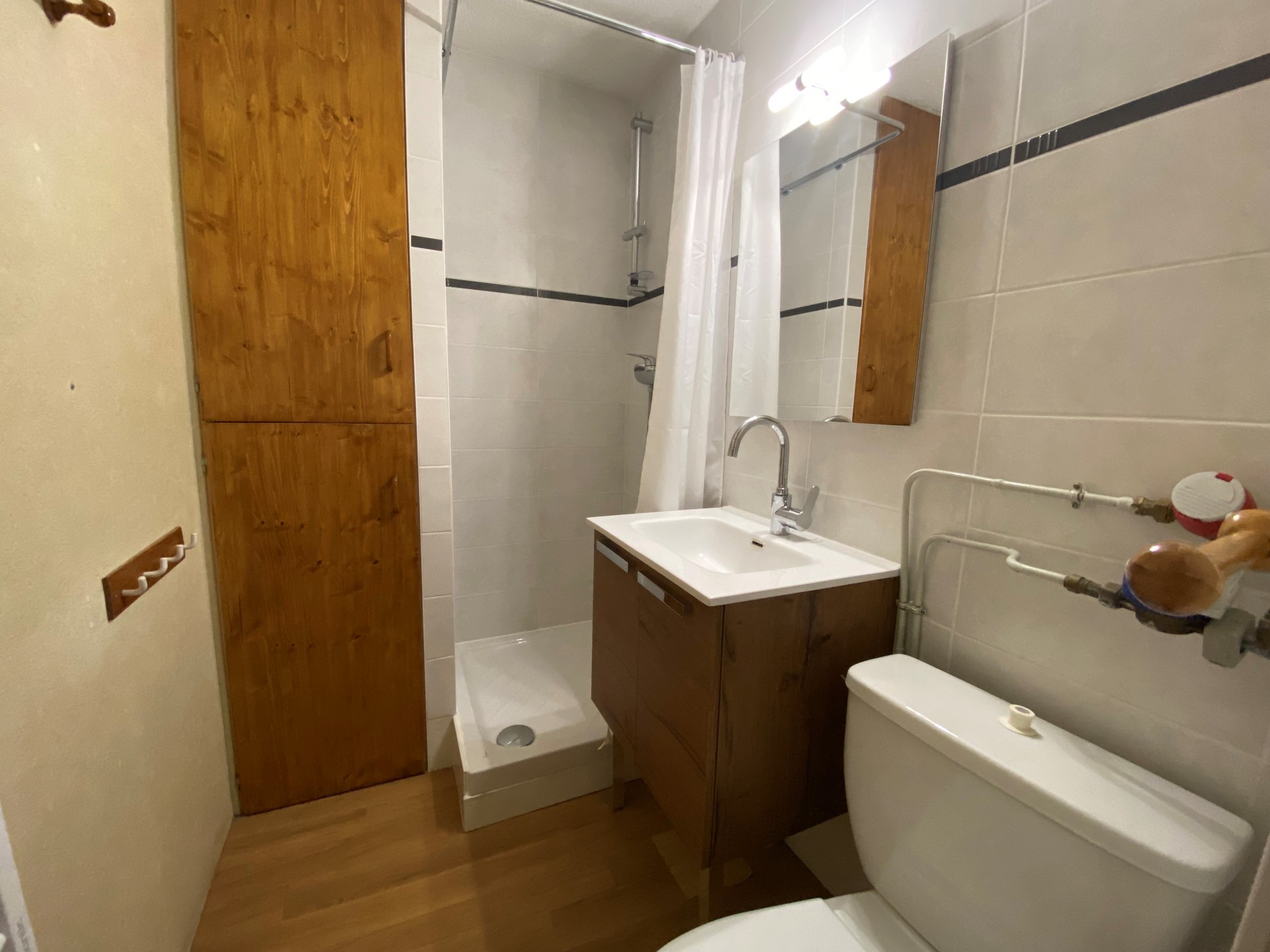 Salle de bain : douche, lavabo, WC.