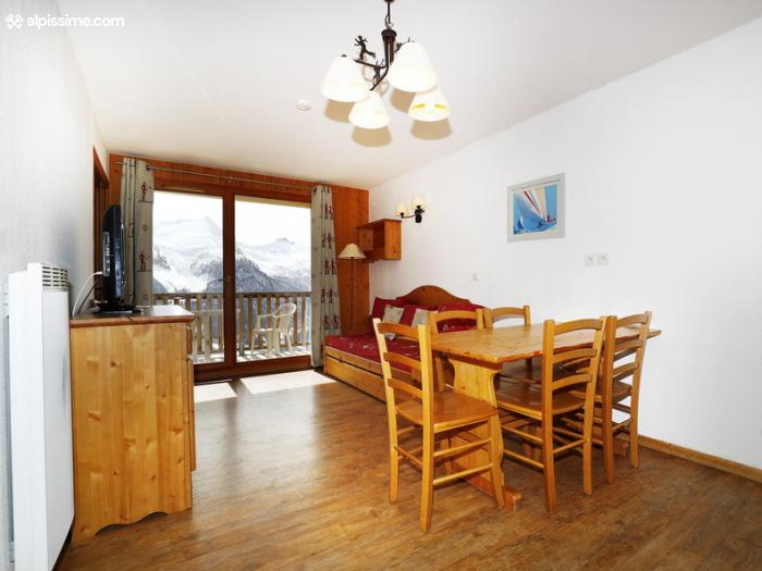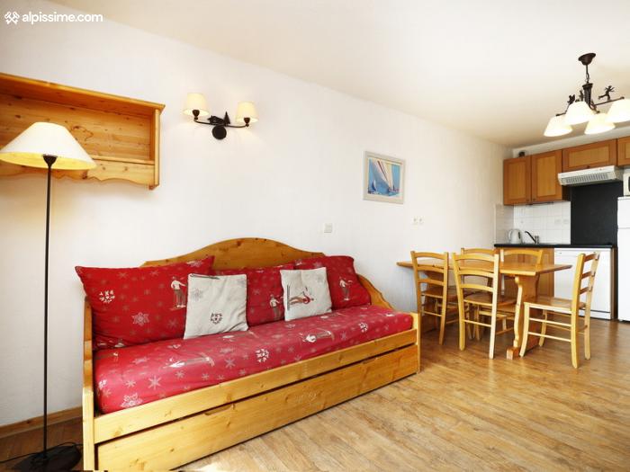Appartement en location à Orcières : 3 pièces 6 personnes composé d'un salon avec canapé convertible et deux chambres proposant chacune 2 couchages.