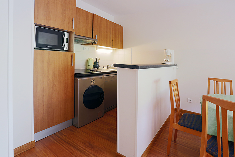 Kitchenette equipee de 4 plaques vitroceramiques, d'un four, d'un micro ondes, d'un refrigerateur, d'un lave vaisselle et lave linge.