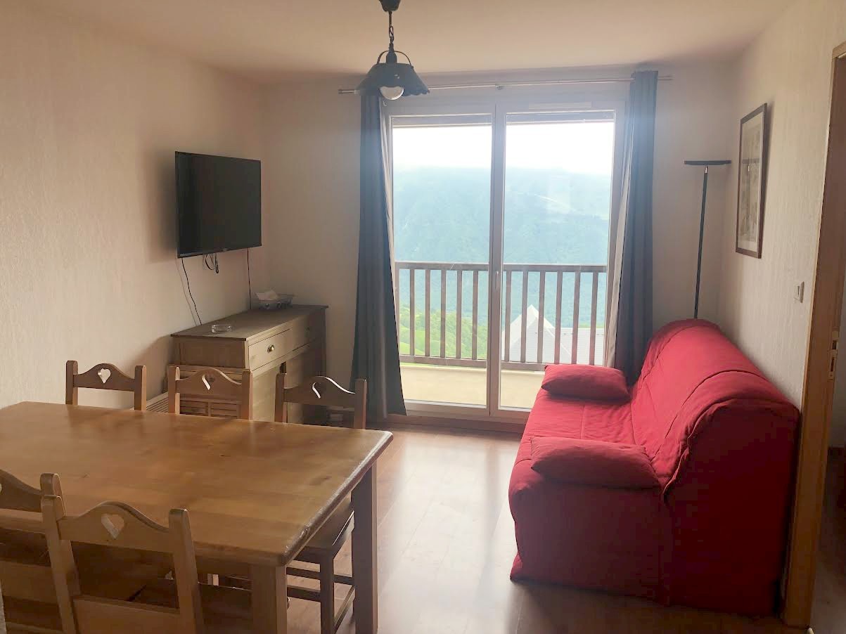 Sejour avec grand balcon, 1 canapeconvertible en 160 et television.