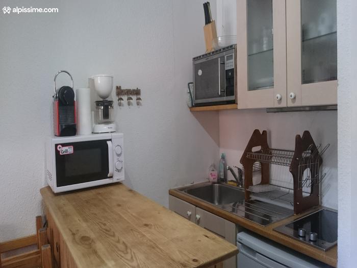 une salle de bain avec baignoire, wc séparé, mini four vitadelice, micro onde - grill, frigo, cafetière et NESPRESSO, plaque vitroceramique 2 feux, lave vaisselle, appareil à raclette et fondue, télévision TNT, casier à ski sur balcon, WI-FI gratuit.