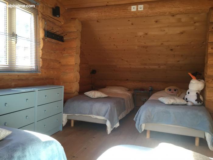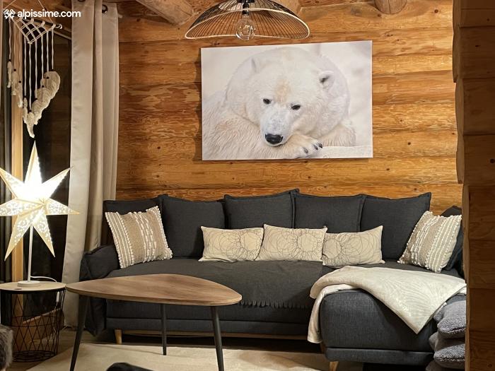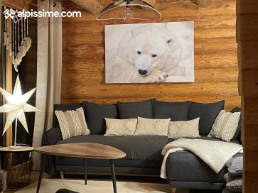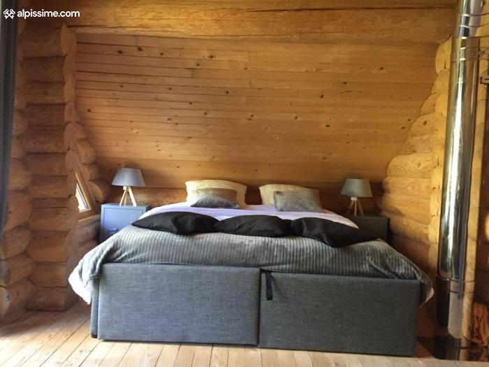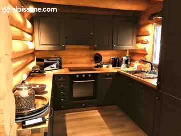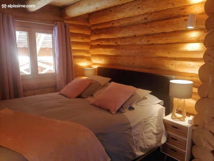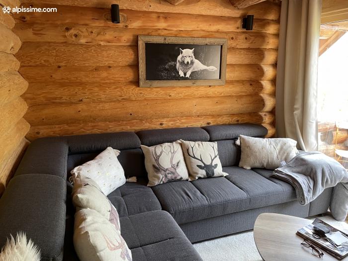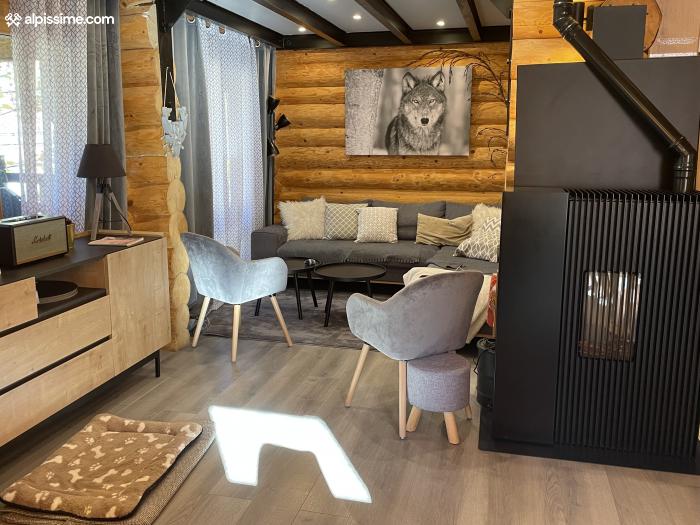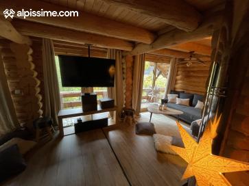 Construction typique en rondins alliant modernité et ambiance montagne, dans un confort absolu et une décoration soignée.