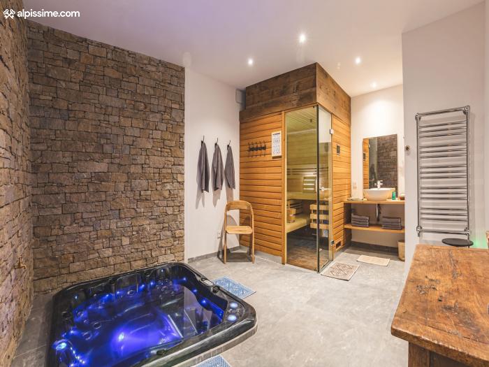 Avec ses espaces de vie commune spacieux et confortables, ses chambres avec salle de bain et toilettes privatifs, sa cuisine suréquipée, son espace bien-être (sauna et jacuzzi), votre séjour dans ce chalet de prestige vous offrira des moments de convivialité facilités tout en préservant l’intimité et la tranquillité de chacun selon l’envie.