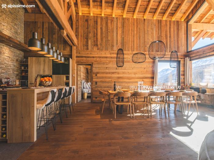 Ce chalet de prestige de 350m2, entièrement neuf, offrant des prestations haut de gamme et décoré avec soin, a été pensé pour vous offrir détente, chaleur, raffinement et confort, le tout, plongeant sur une vision panoramique enveloppante de la station de la Foux d‘Allos.