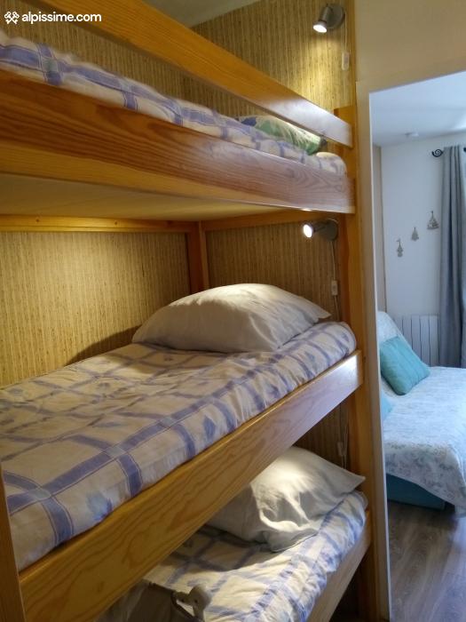 Canapé convertible en vrai lit 140 cm ( neuf) . Martelât 15 cm (neuf) . 3 lits superposés . Placard à skis privatifs .