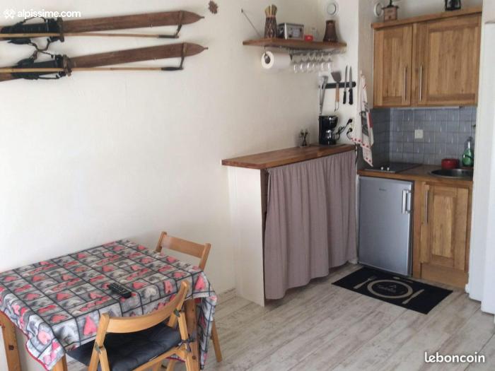 Particulier loue ce charmant studio de 18m2, noté 1*, équipé pour 4 personnes qui comprend un coin montagne avec 2 lits superposés à l'entrée, un séjour avec un couchage pour 2 personnes (lit clic-clac), un coin cuisine (four multifonctions, 2 plaques chauffantes, frigo, cafetière, grille pains, appareil à raclette, etc...), une salle de bains avec WC.