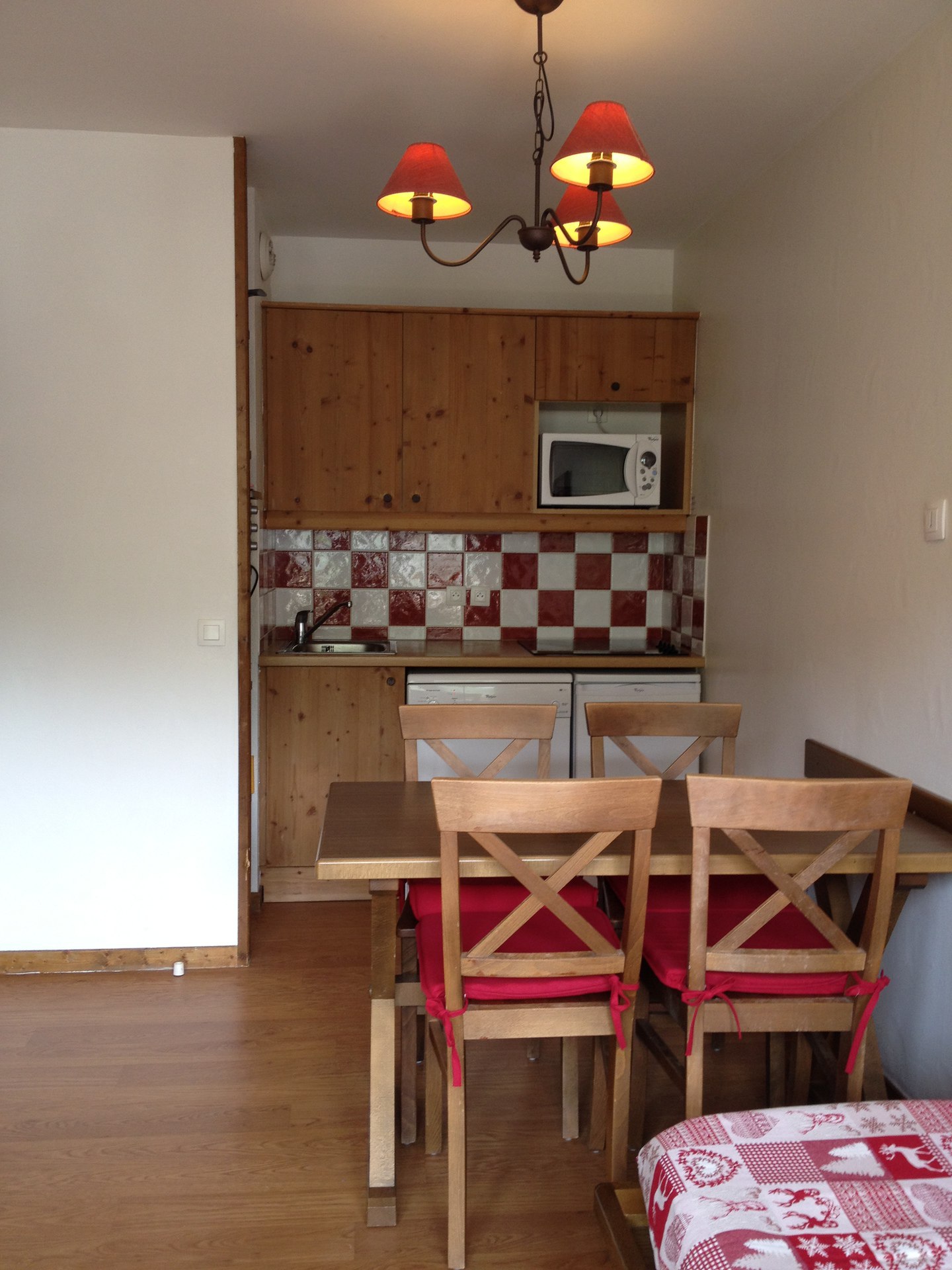 - Coin Cuisine : mini-four, micro-ondes/grill, lave-vaisselle, refrigerateur, plaques induction (4 foyers).