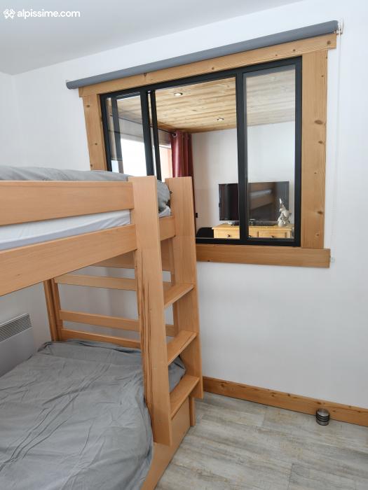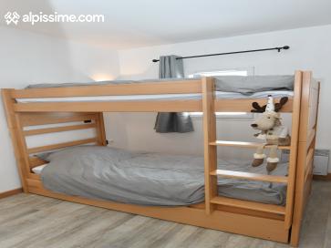 Une belle chambre avec dressing et lit superposé 3 places (couchage 90x190, dont 1 lit gigogne relevable). Tous les couchages sont équipés de couettes et oreillers.