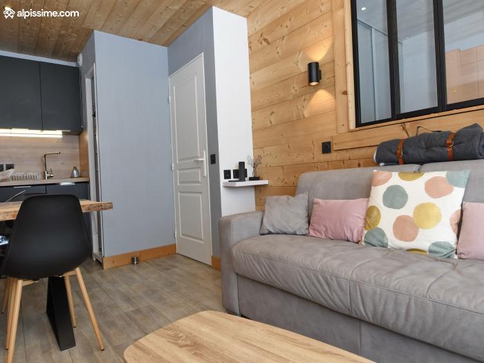 Parfaitement situé dans résidence Le Chamois, venez profiter de ce lieu unique et cosy, avec grand balcon dominant la station.