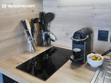 Vous y trouverez une cuisine intégrée équipée (frigo, lave-vaisselle, four micro-onde, Nespresso, …) ; ouverte sur salon cosy avec canapé convertible Rapido (couchage 160x190 et vrai matelas 22cm). TV 108cm écran plat.