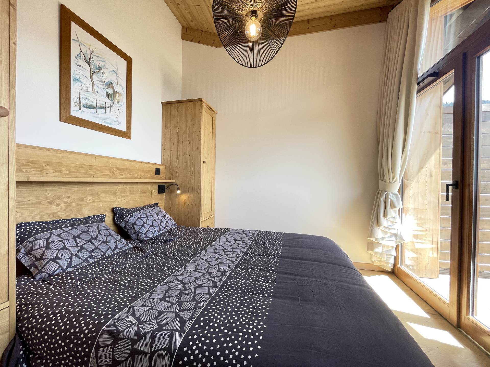 Une chambre avec un lit double 160 + acces terrasse